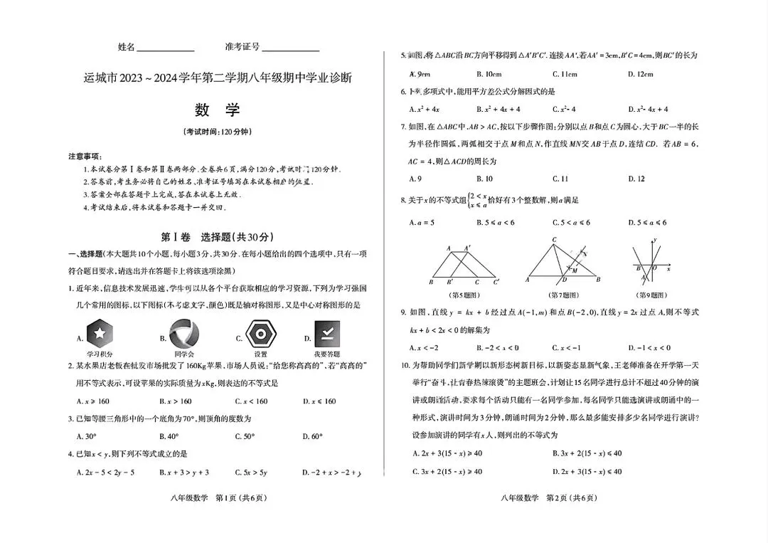 2026年《53初中试卷》(数学、语文、道法、历史)七下+(语文、数学、英语)八下