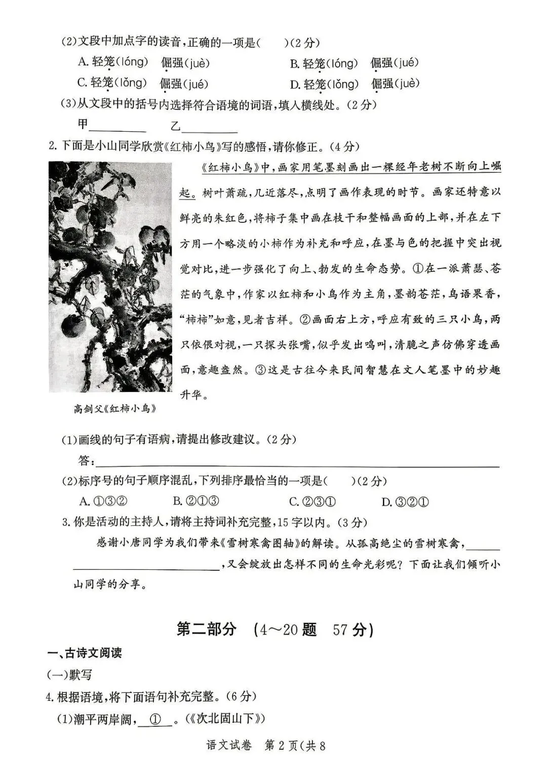 2026年唐山市中考一模语文试卷