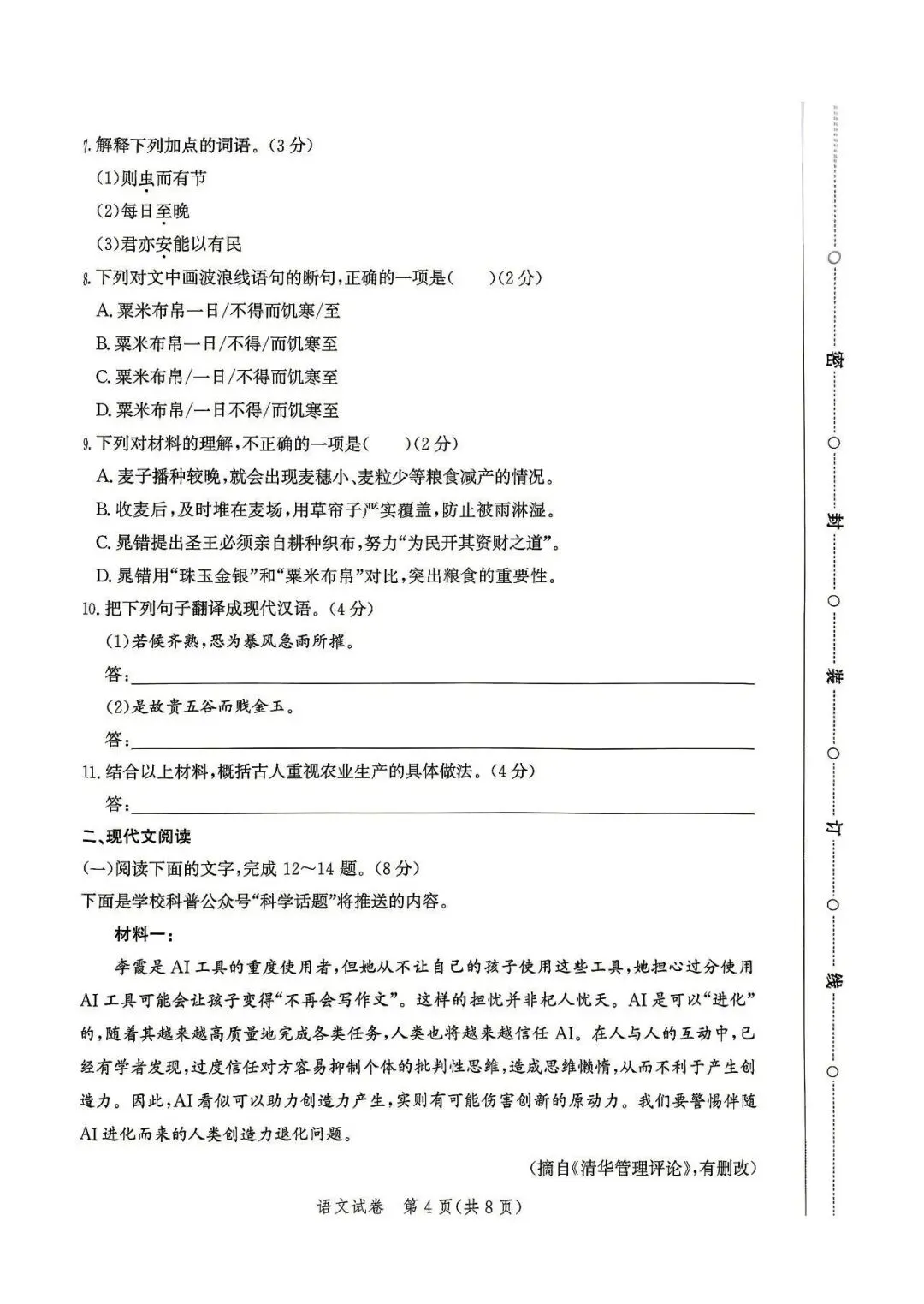 2026邯郸成安中考一模语文试卷