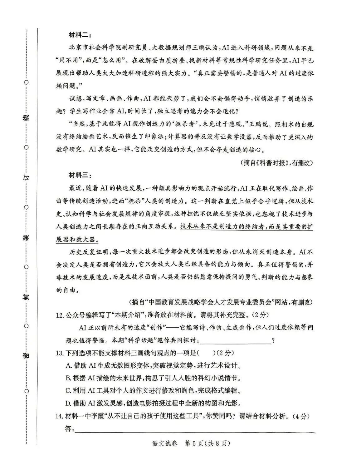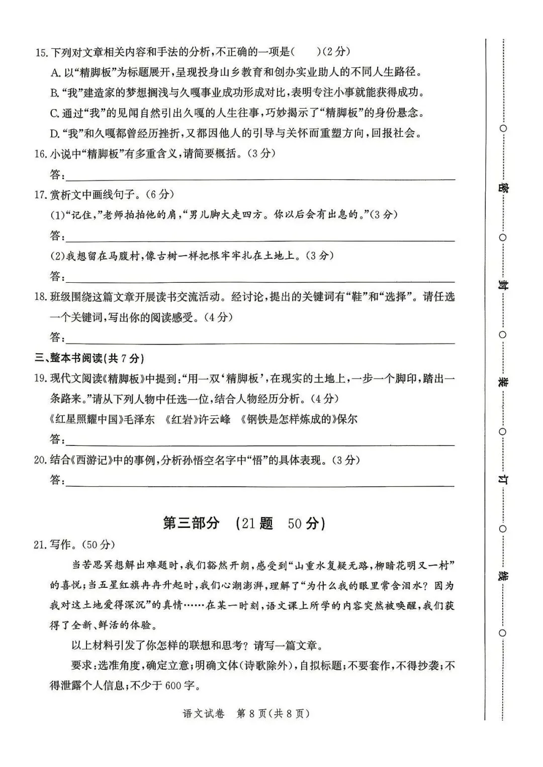 2026年河北中考素养检测语文试卷