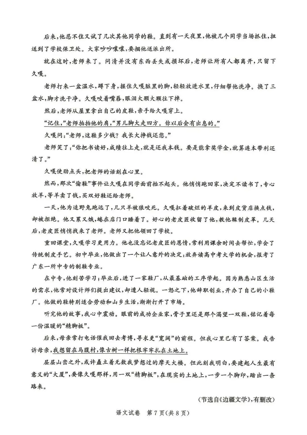 2026年初中学业水平测试模拟演练一语文试卷