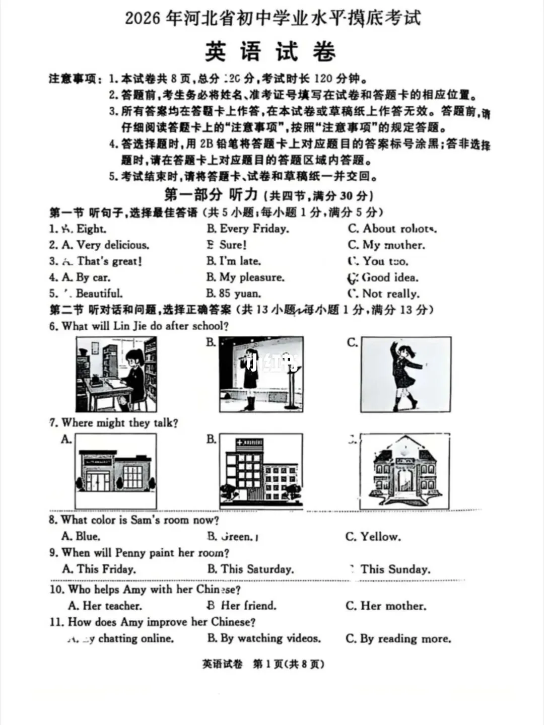 >2026年河北省初中学业水平摸底考试试卷
