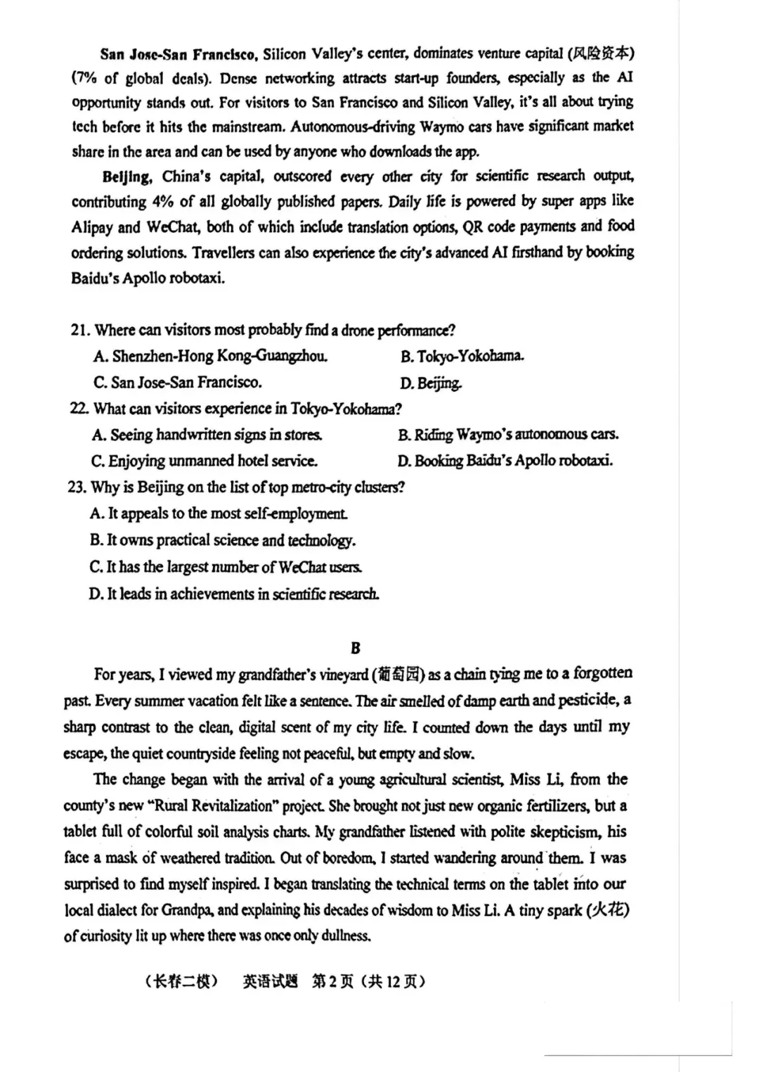 吉林省长春市二模全科试题+答案