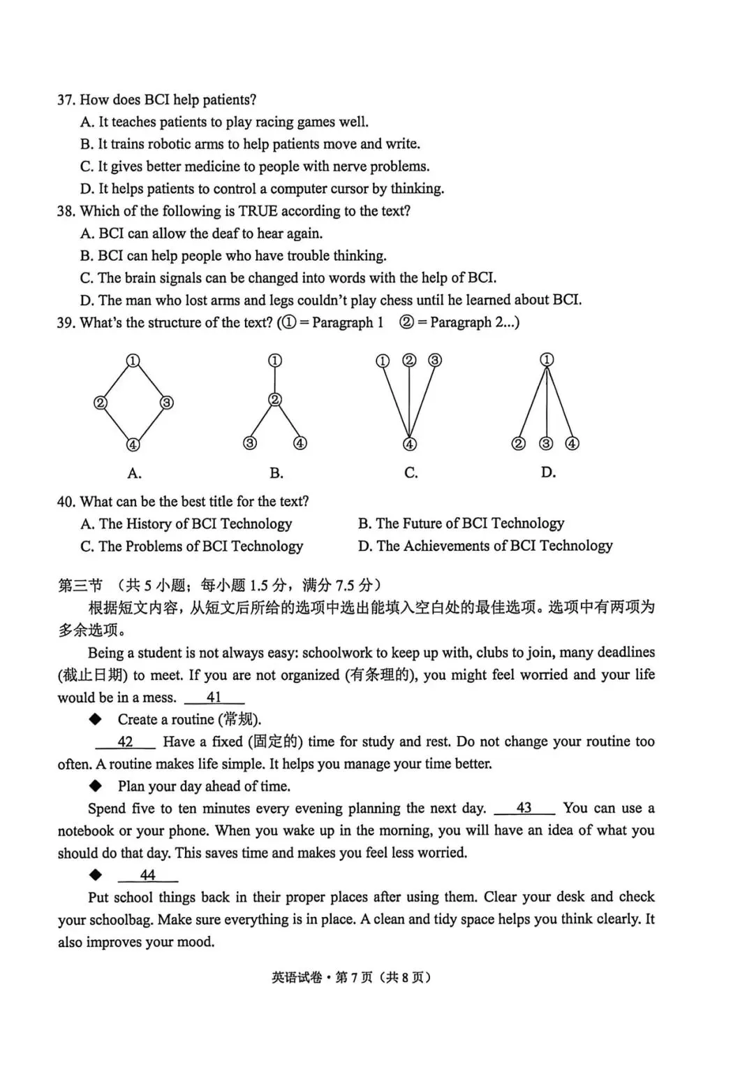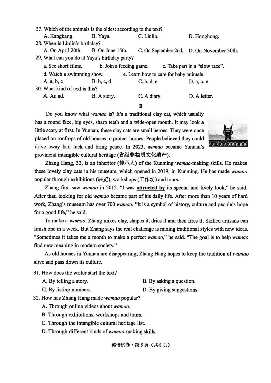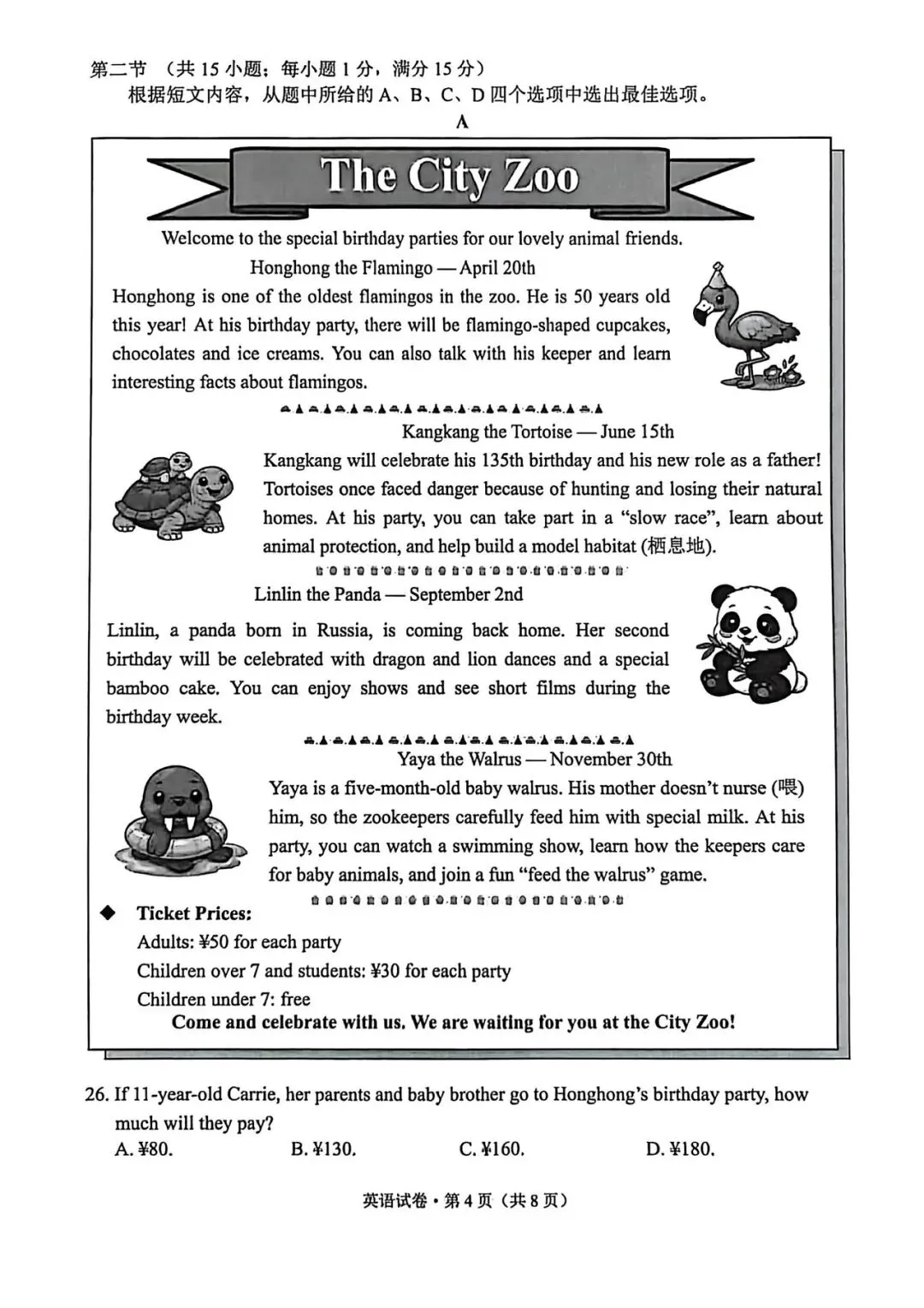 >2026年昆明市统测英语试卷+答案