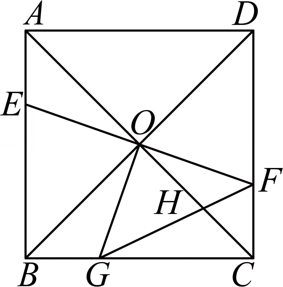 14.如图,在正方形ABCD中,AB=10,对角线AC和BD相交于点O,E为边AB上一动点,连接EO并延长交边CD于点F,过点O作OG⊥EF交BC于点G,连接GF交OC于点H.