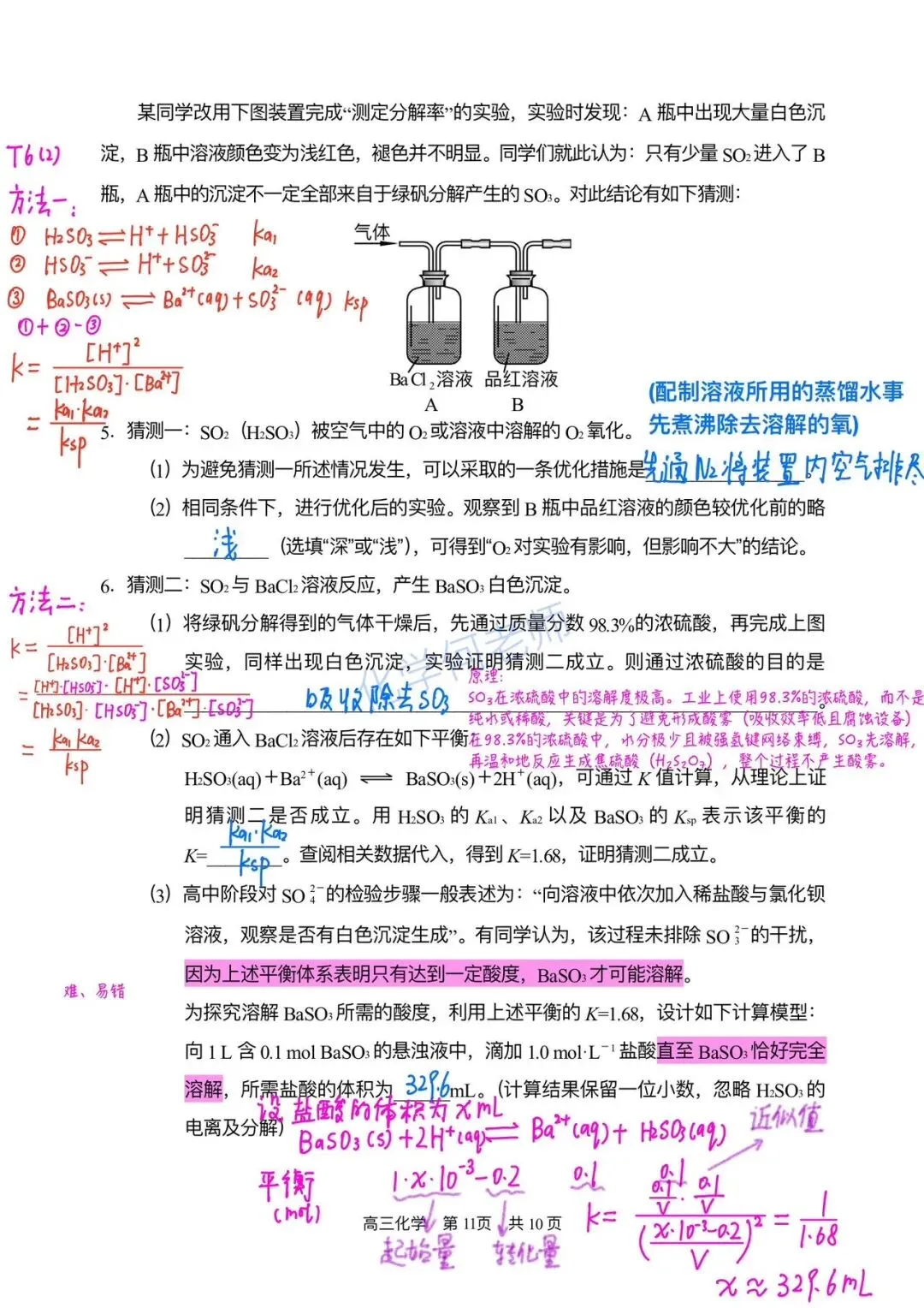 第一大题 说实在话,题量还是有点大的,作为开篇第一大题,给考生造成的压力还是不小的。题型上,既有结合信息进行分析的文字叙述题,也有滴定计算,都是区分度较大的题。学生在做这样的题的时候,很多情况下,自身要具备一定的能力,对方向要把握准确,但又不能过度分析。假如第一大题就用去了三分之一的考试时间,还是很可怕的【把控好时间】第二大题 相对第一大题而言,题量和难度低了不少。但也有一些易错的点,如关于超分子内部分子或者分子和离子间的作用力,是属于“非共价键”,尤其是分子(本题中的冠醚)与金属离子(本题中的碱金属离子)间存在的“弱配位键”(远低于正常的配位键的键能),就比较难界定。所以第3小题的C选项是比较容易错选的,两者间的作用力不能看作普通配位键。第三大题 主要考点有化学反应的方向,反应速率的计算,平衡状态的判断,多重平衡中的选择性计算,说理。这道大题难度比较正常。选择性的计算,相对而言,难度不大。最后一道说理是开放性的答案,从元素守恒或者从可行性角度都可以。第四大题 这道大题难度也不是很大,控制好时间即可。考点有浓硫酸的性质,配合物,二氧化硫和铁离子的检验,离子方程式书写,实验条件的控制,平衡常数综合运用和计算。最后一题盐酸体积的计算,有难度,很容易错。这题的思路和24年嘉定二模的一道沉淀转化计算有点类似。变式