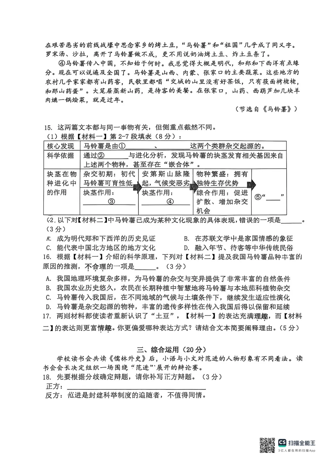 ③适当加入高中模拟卷的非连续性文本(多材料)练习、讲解,做好初高衔接,积极应对高中题型下放趋势。