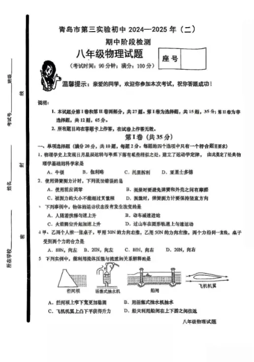青岛3-8年级第二学期期中真题