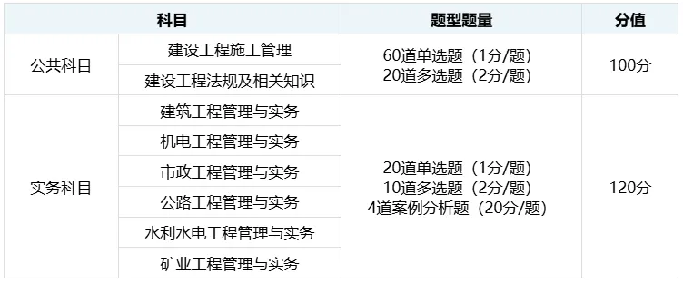 二建考试科目分为公共科(《建设工程施工管理》《建设工程法规及相关知识》,均为客观题)和专业科(《专业工程管理与实务》,含客观题+案例分析题),专业科有6个方向可选,考生需明确自身报考专业对应的考试日期。