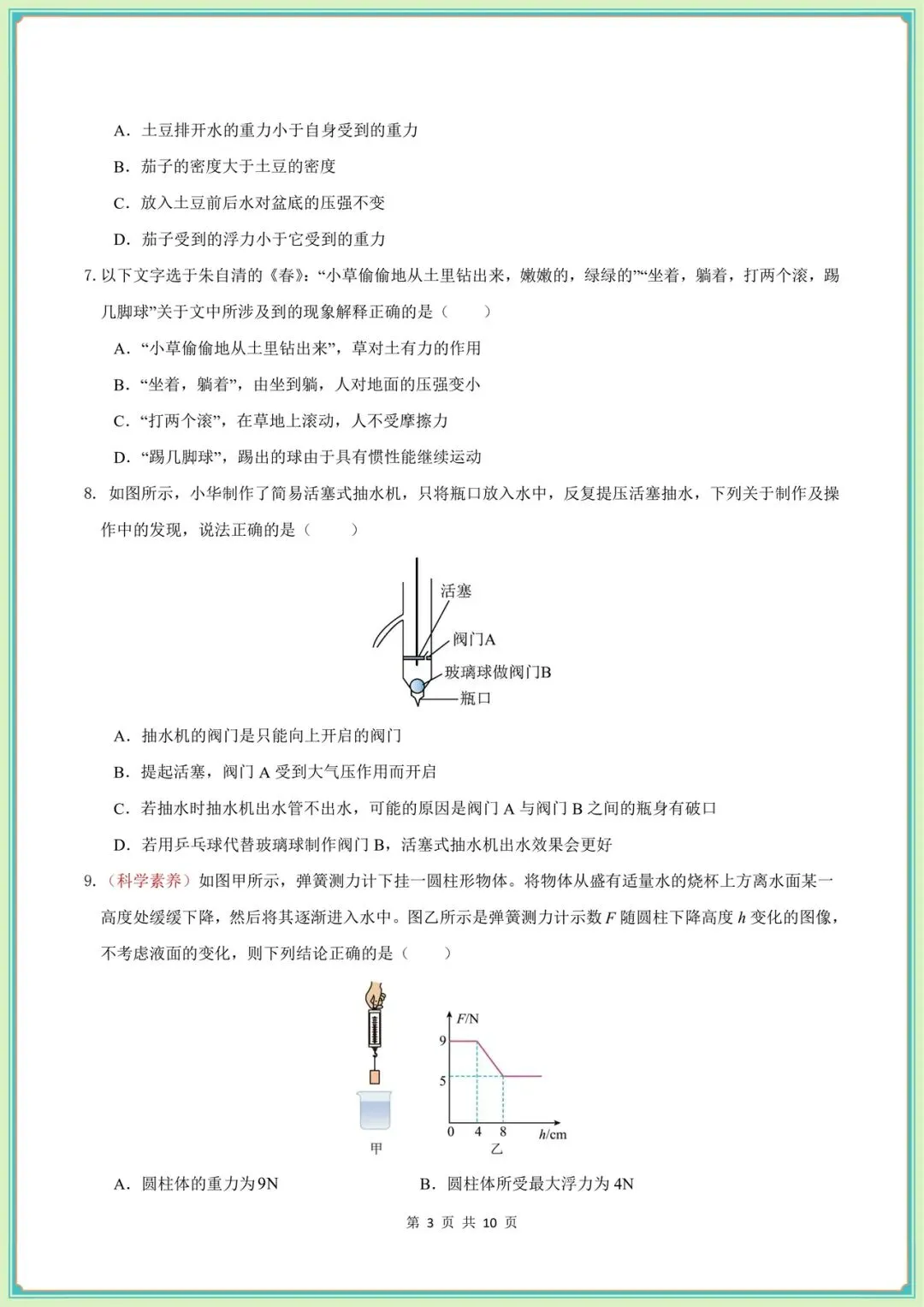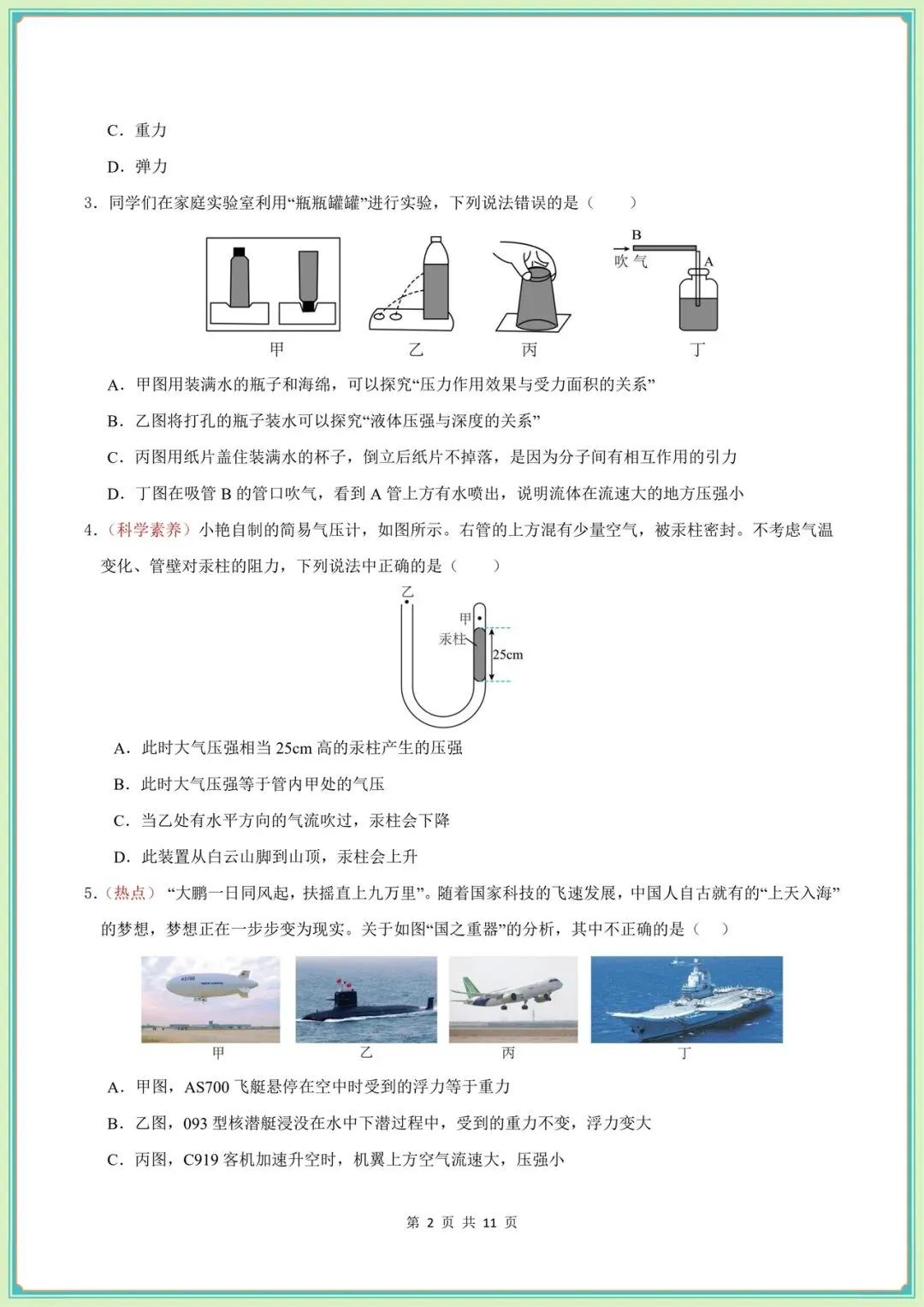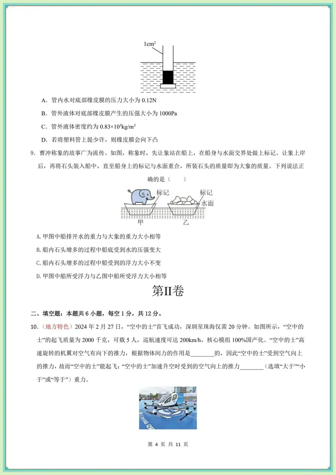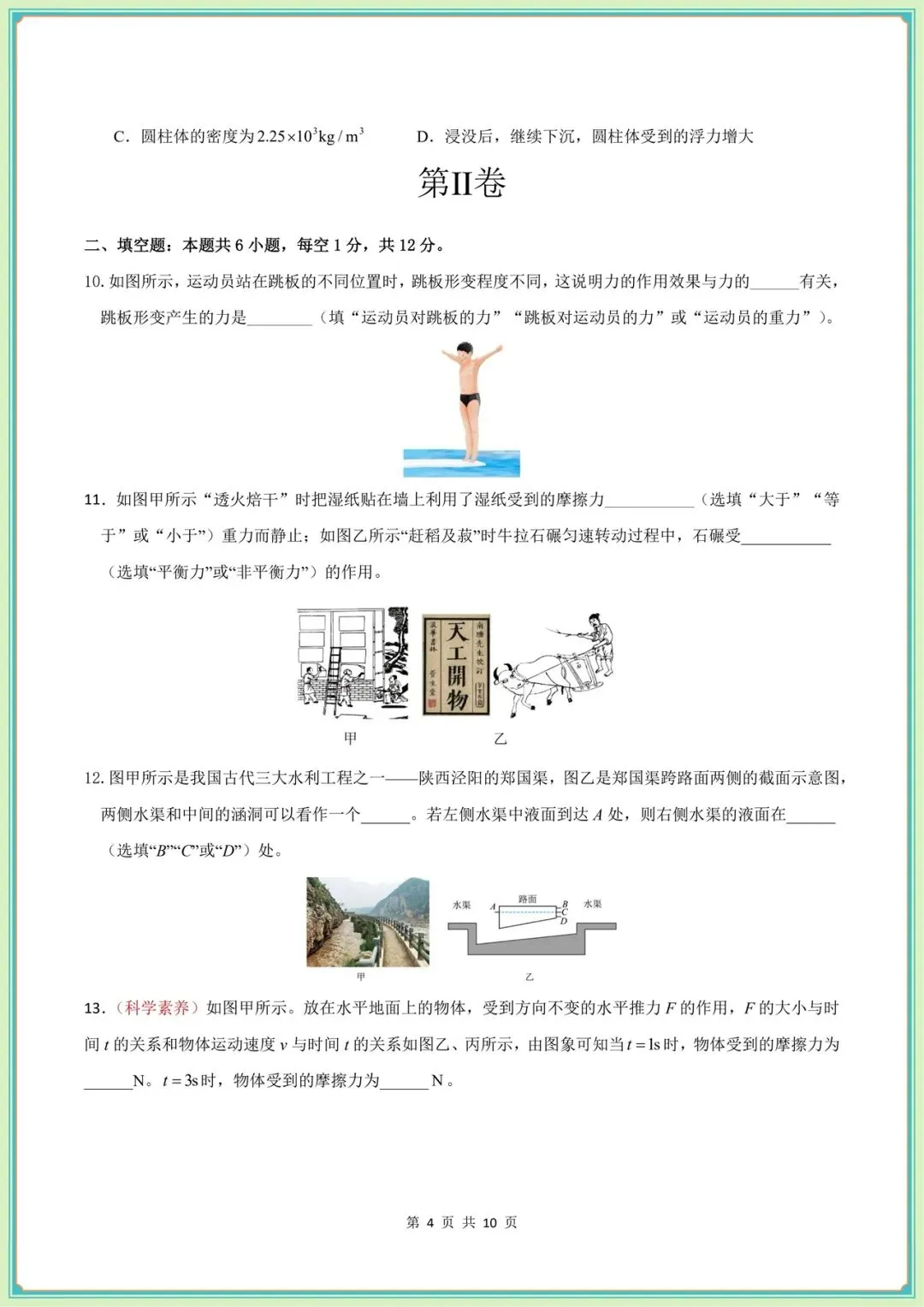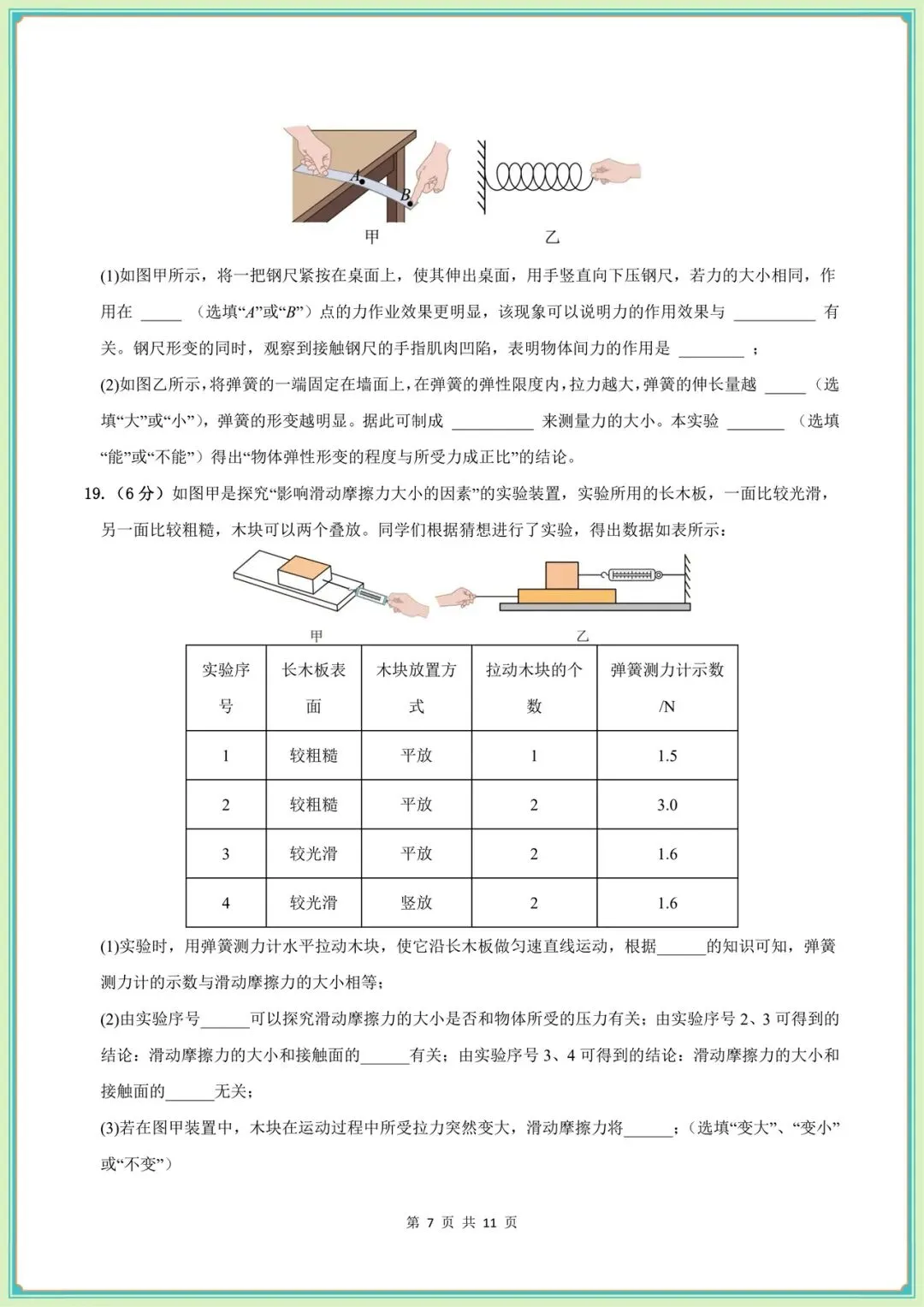 2026春人教版八年级下册《物理》期中试卷(7套含答案),电子版可打印!