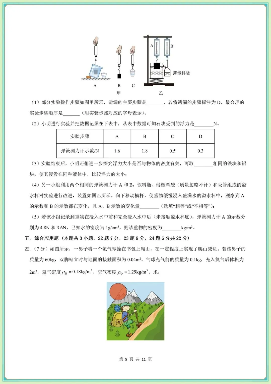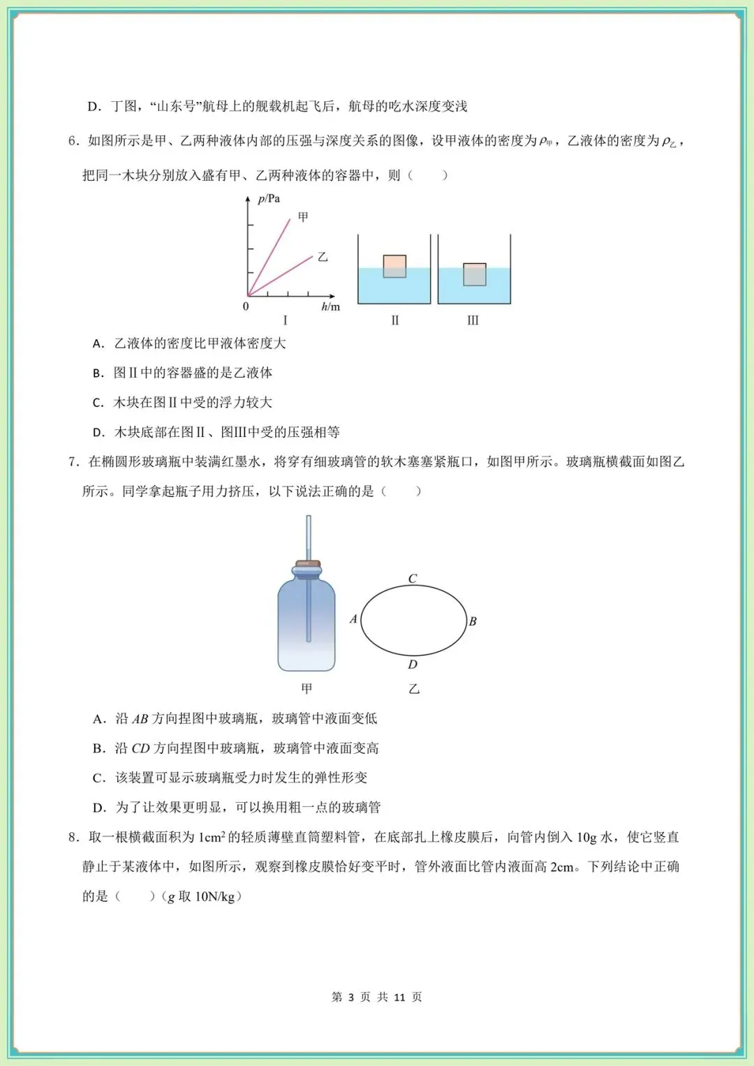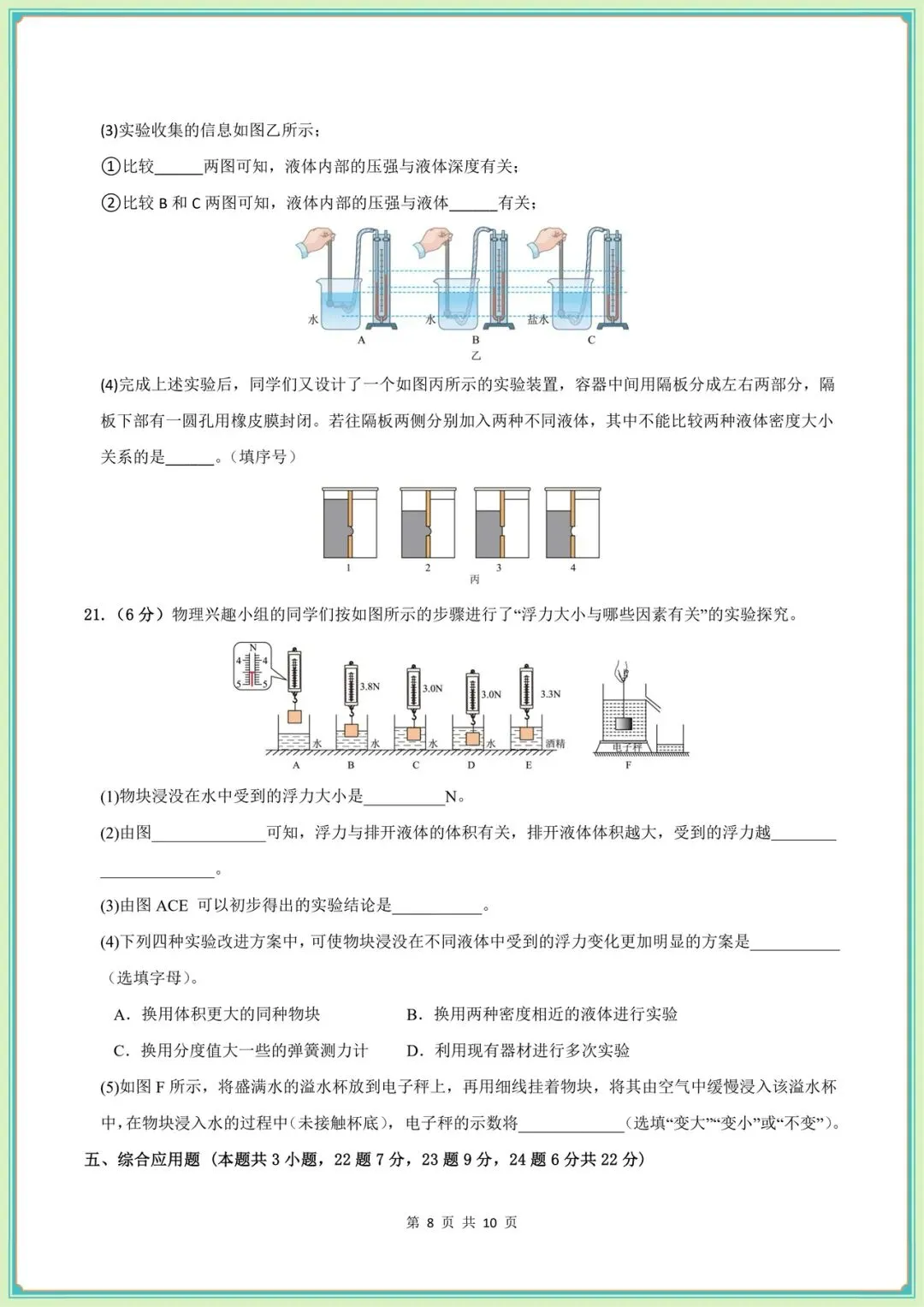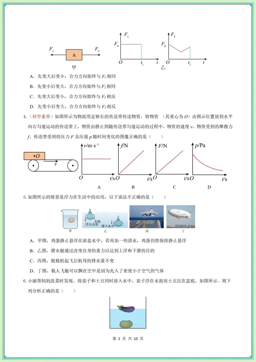 2026春人教版八年级下册《物理》期中试卷(7套含答案),电子版可打印!