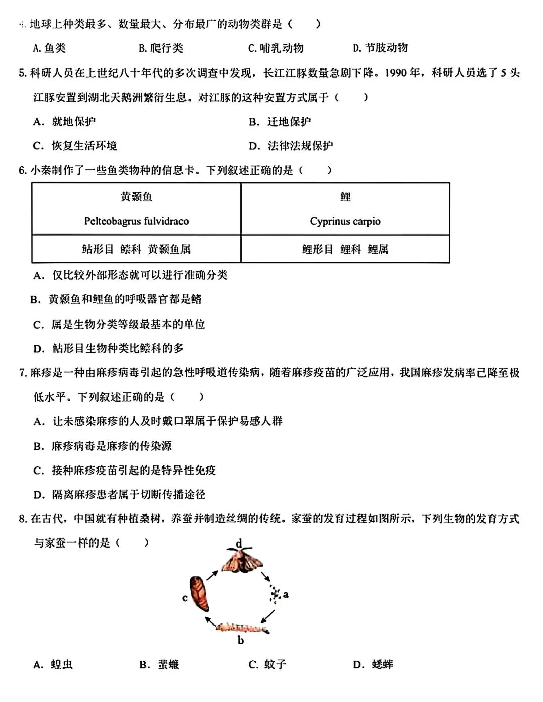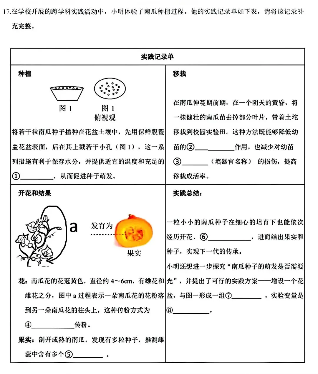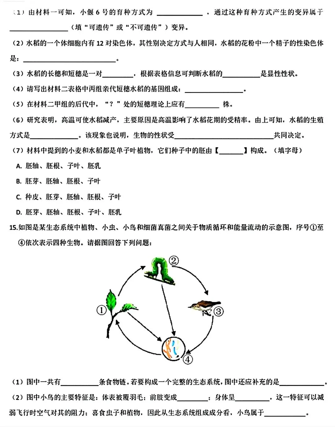 2025-2026沈阳南昌中学中考零模生物含答案(无水印).pdf