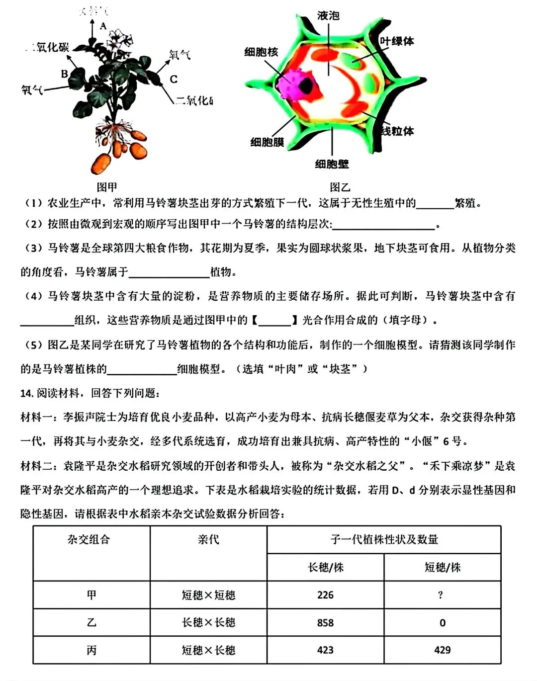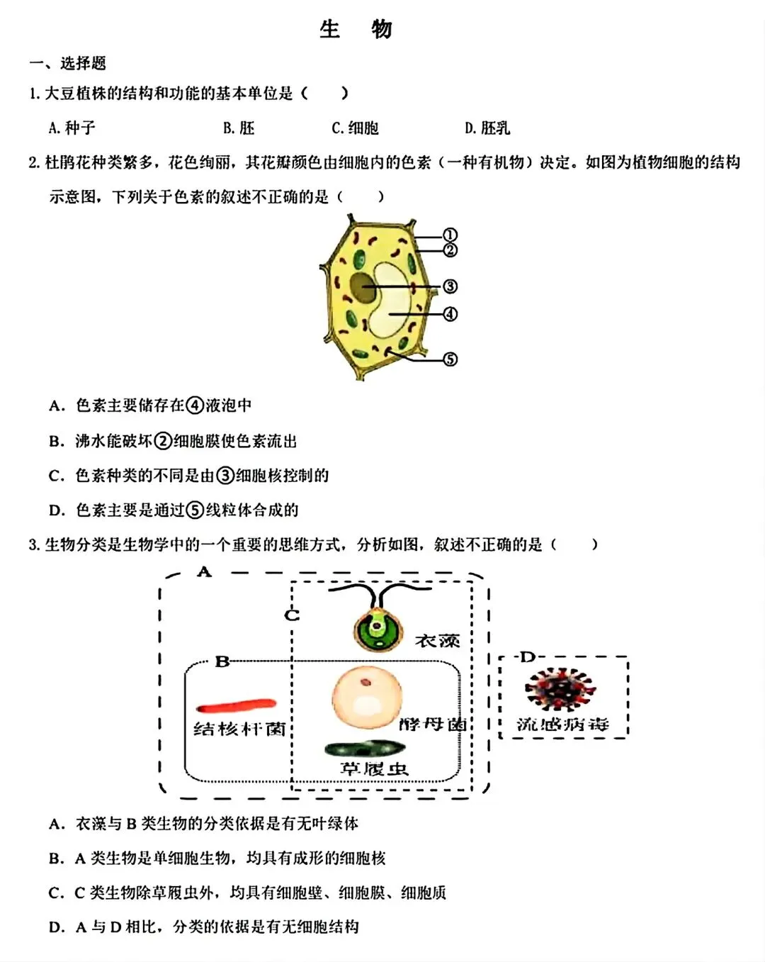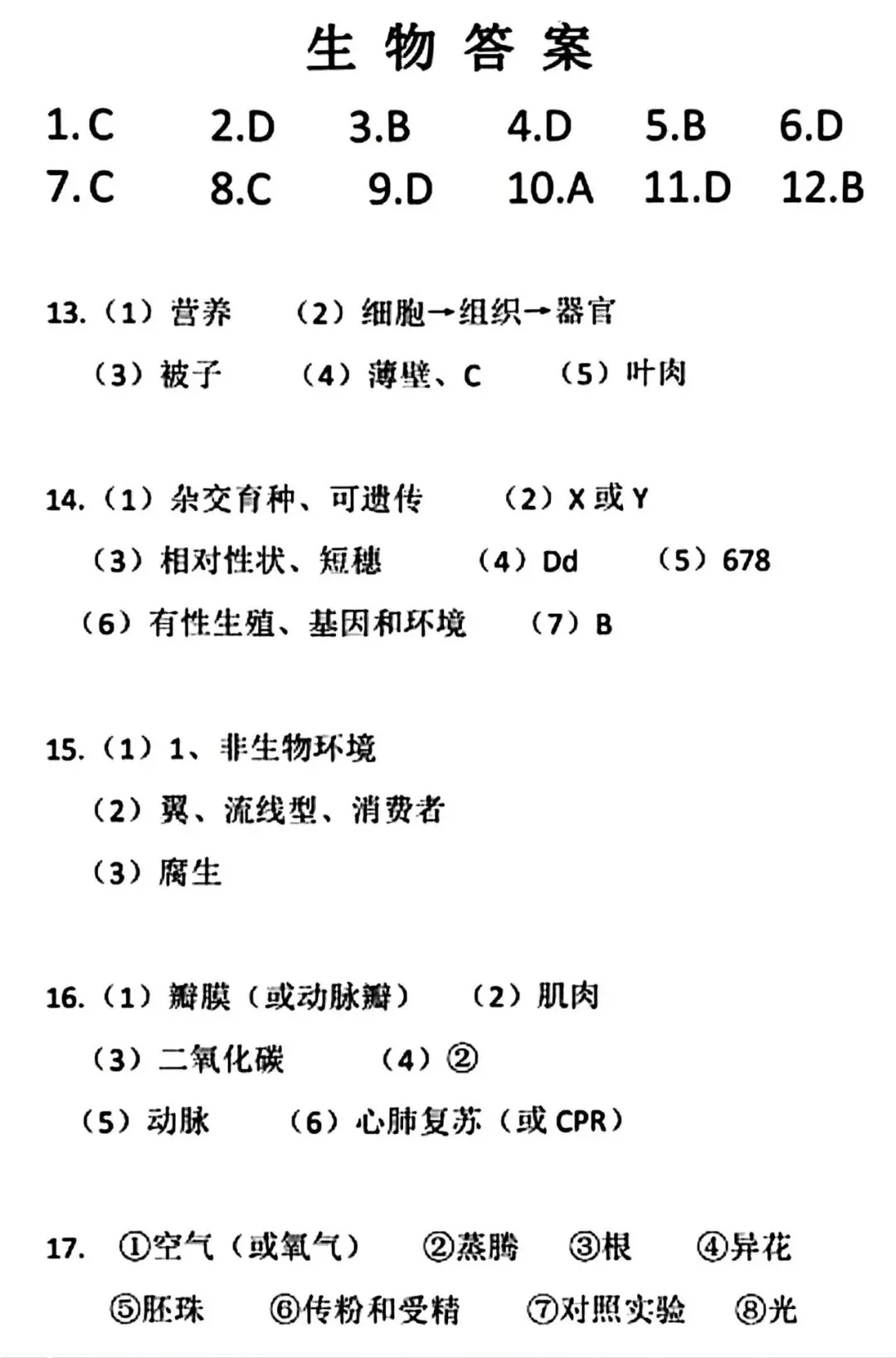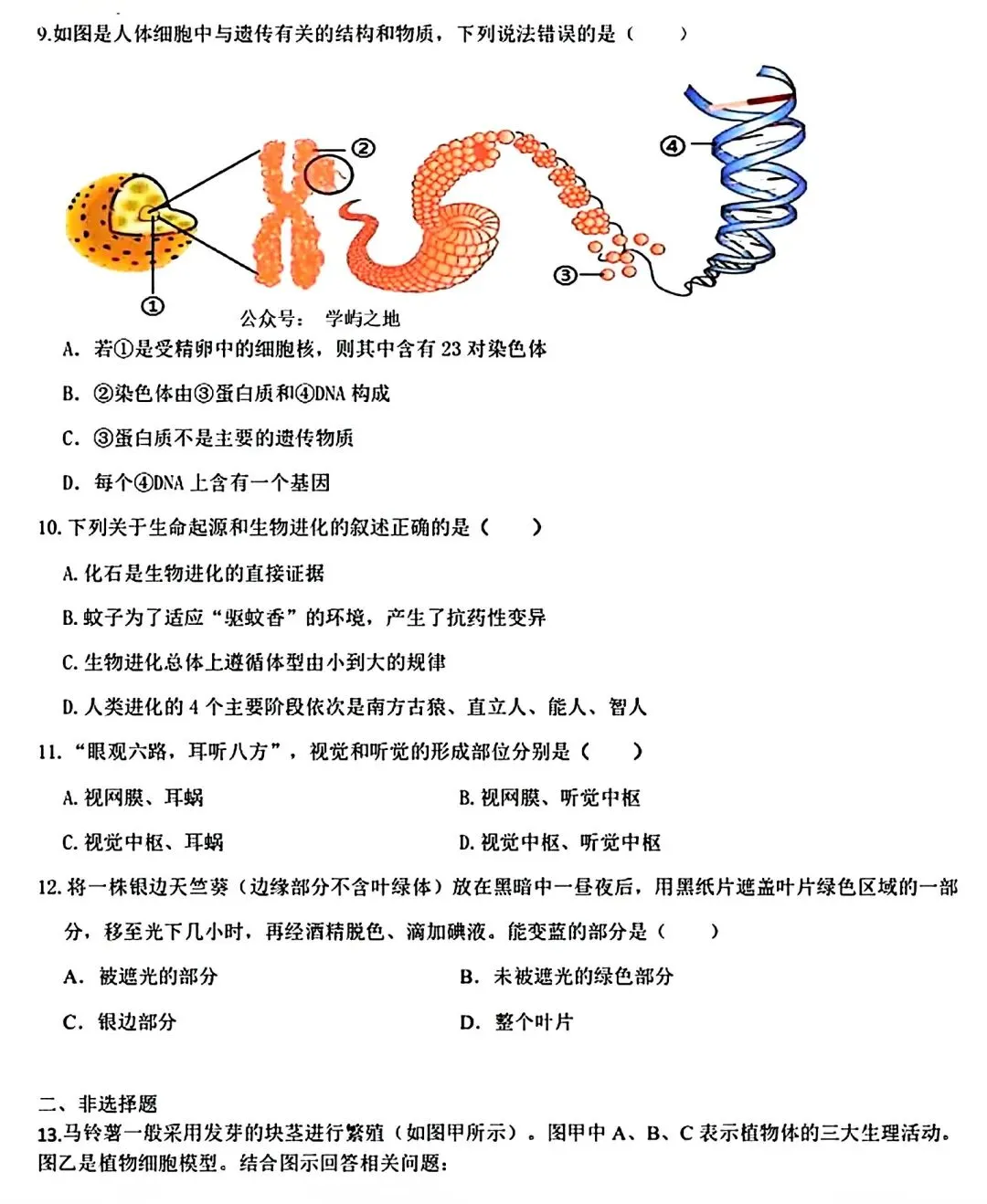 2025-2026沈阳南昌中学中考零模生物含答案(无水印).pdf