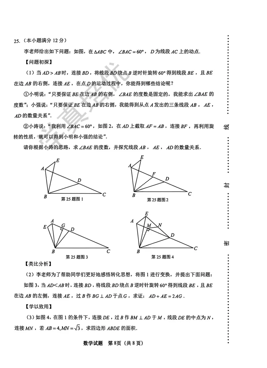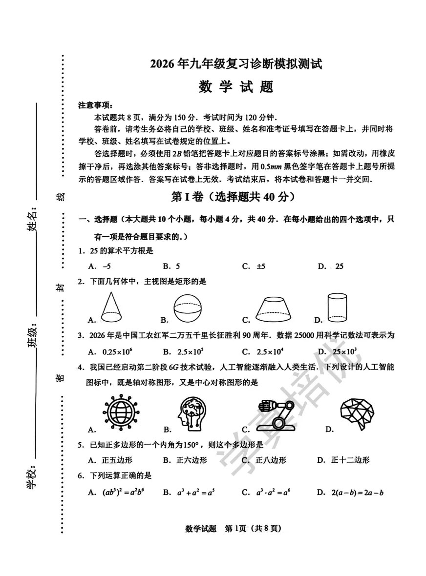 【最新】2026.4天桥区一模数学试卷及答案解析