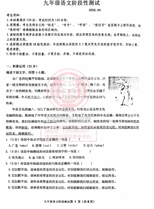 当前位置:首页>考研真题>【九下】2026年阿城区一模语文考试试卷+答案