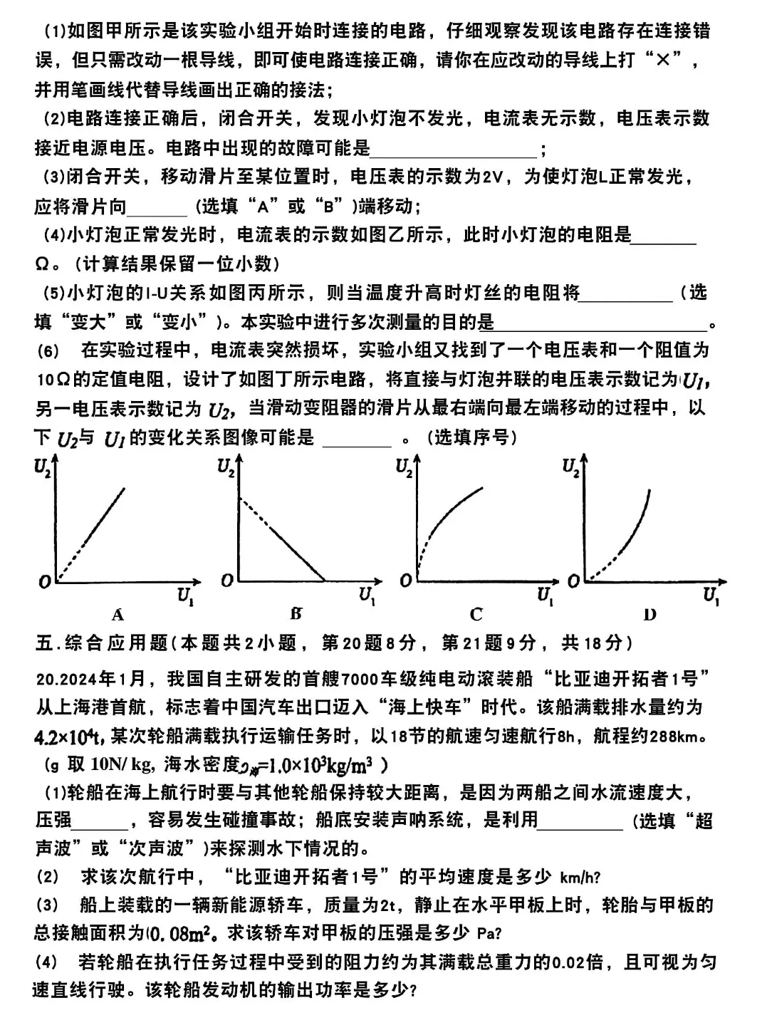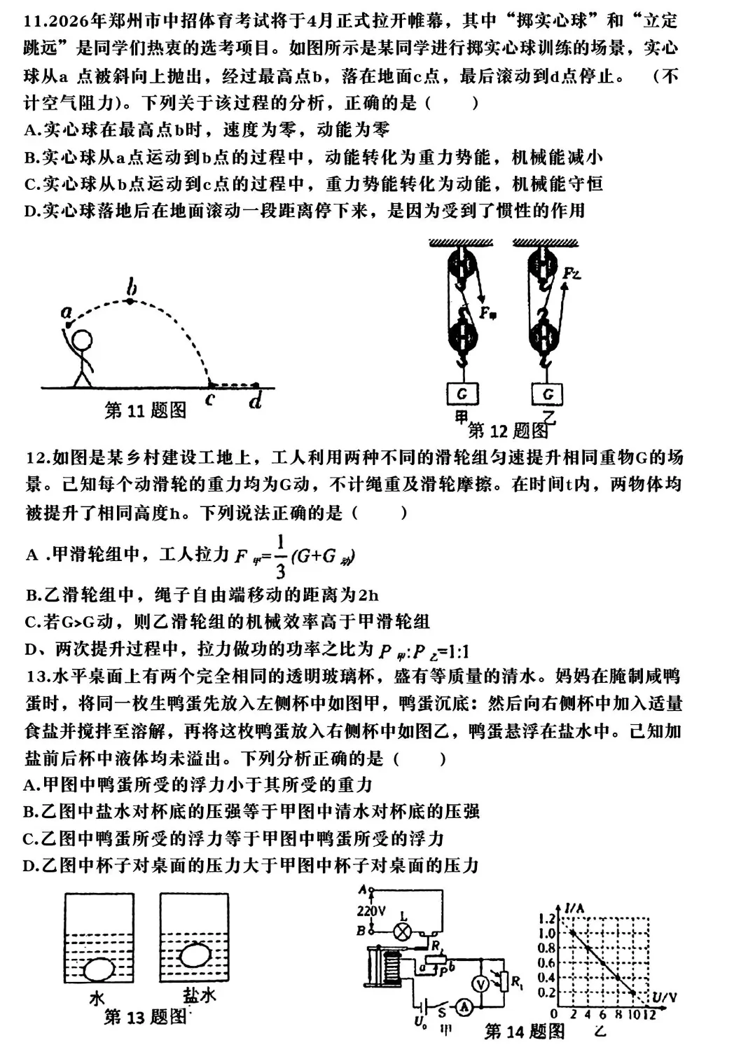 【试卷/初二下】2025-2026沈阳134中学八下4月物理(含答案)可下载