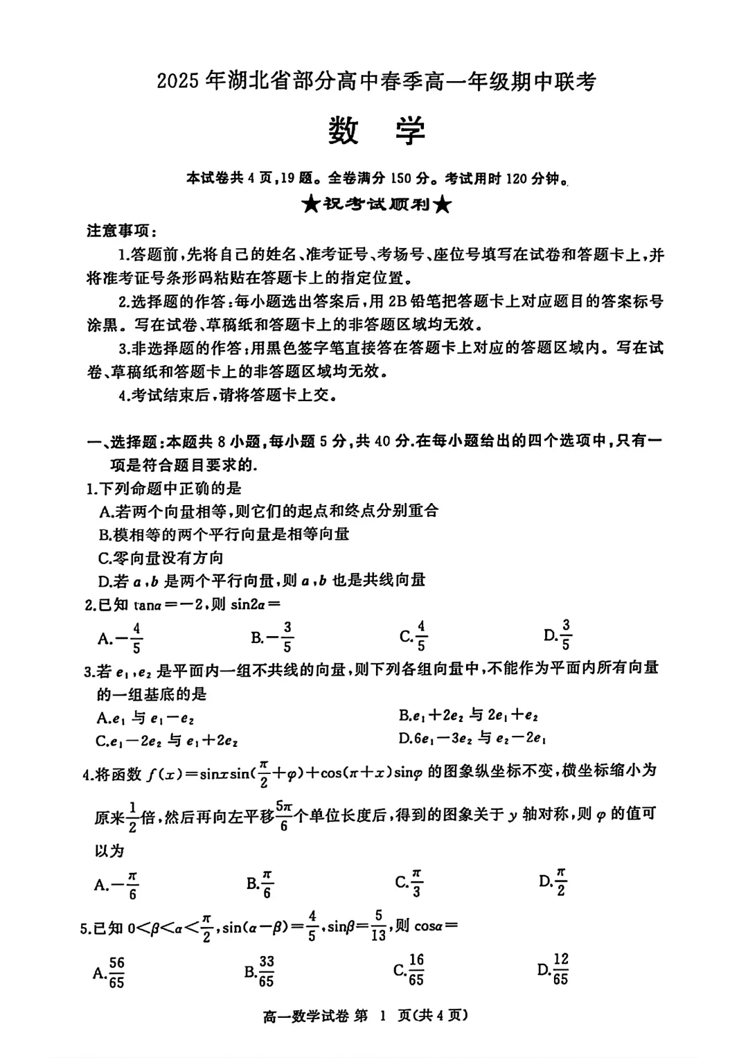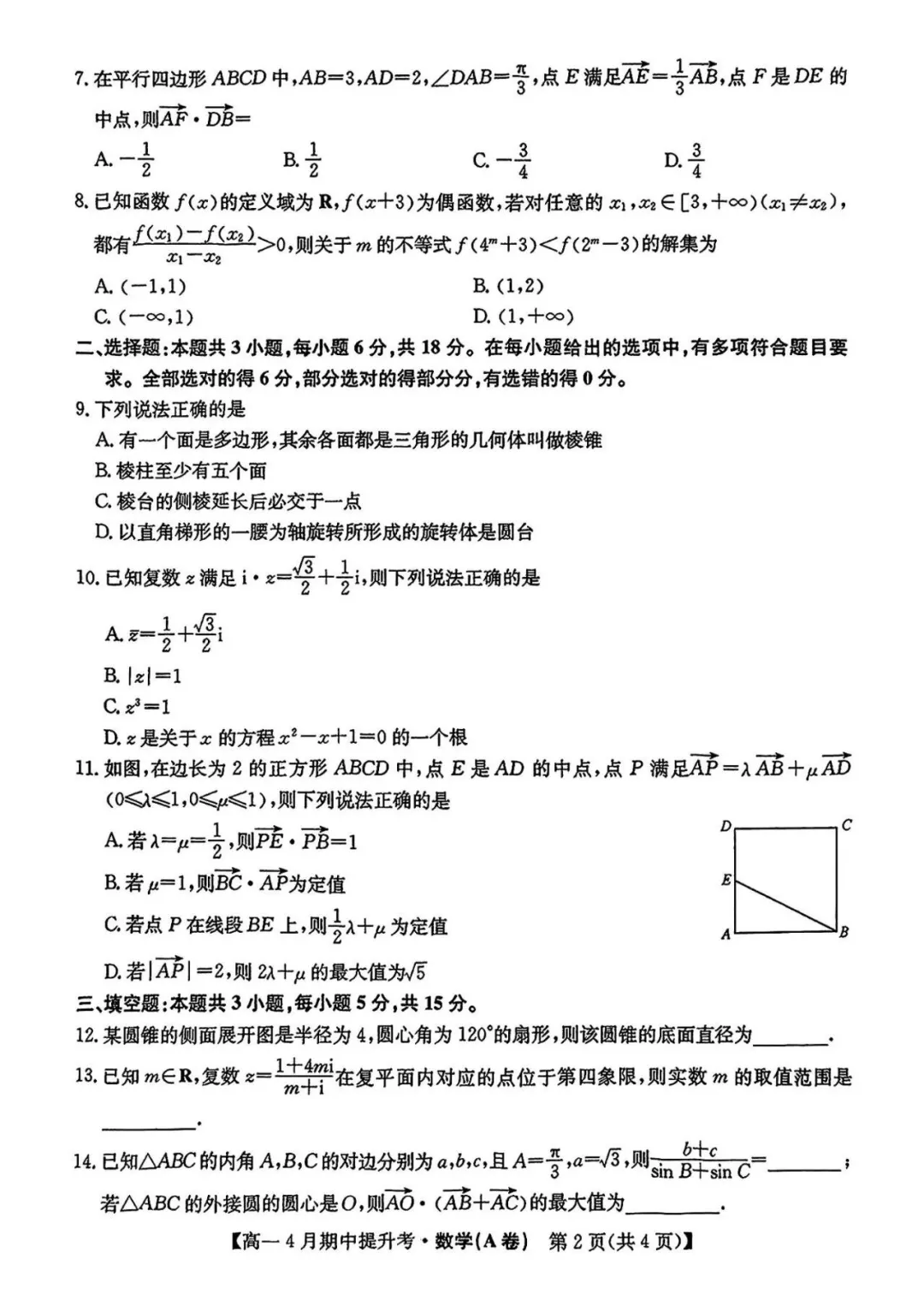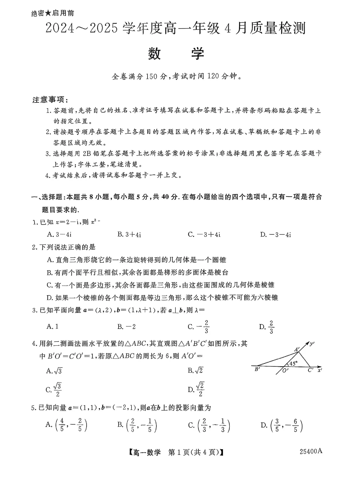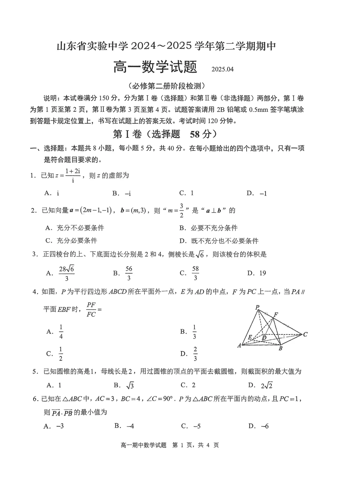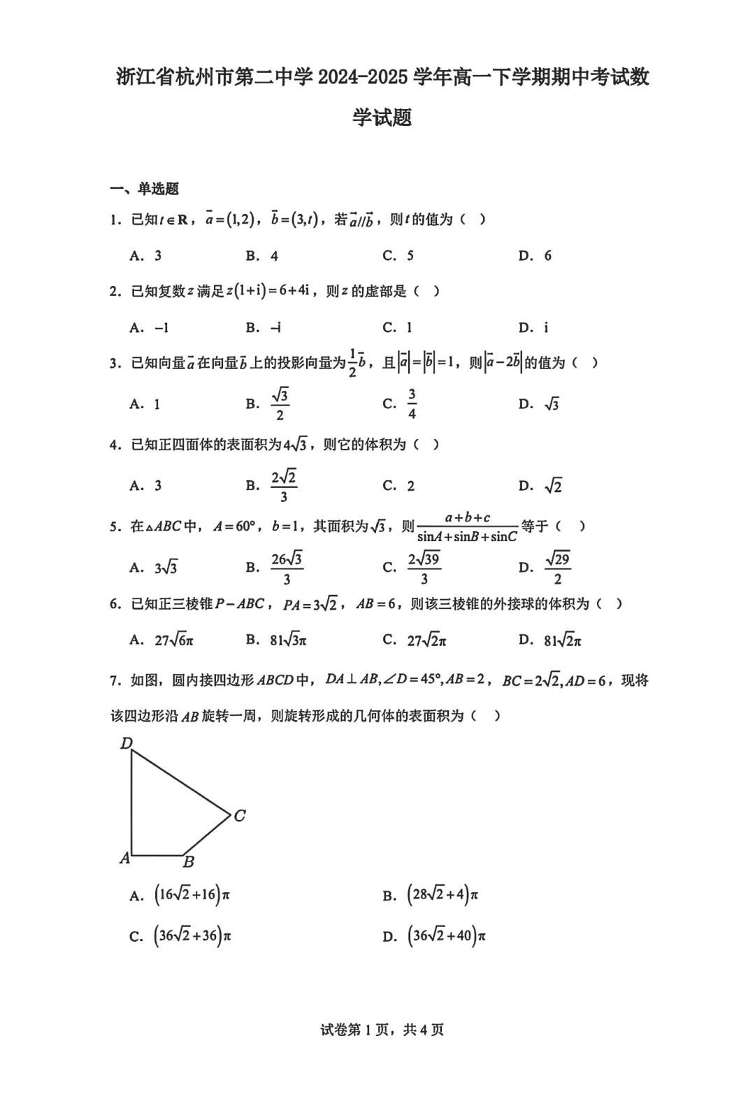 2504-高一下期中考