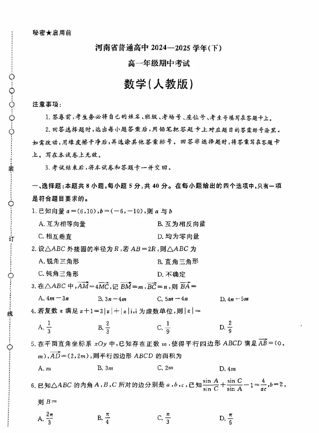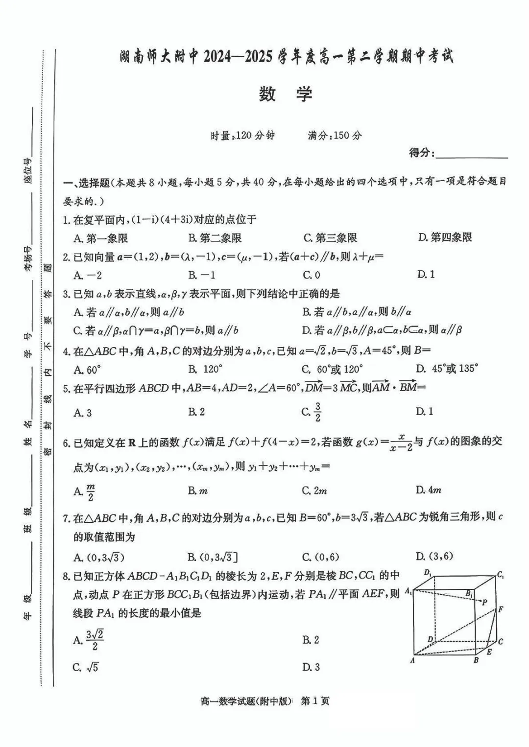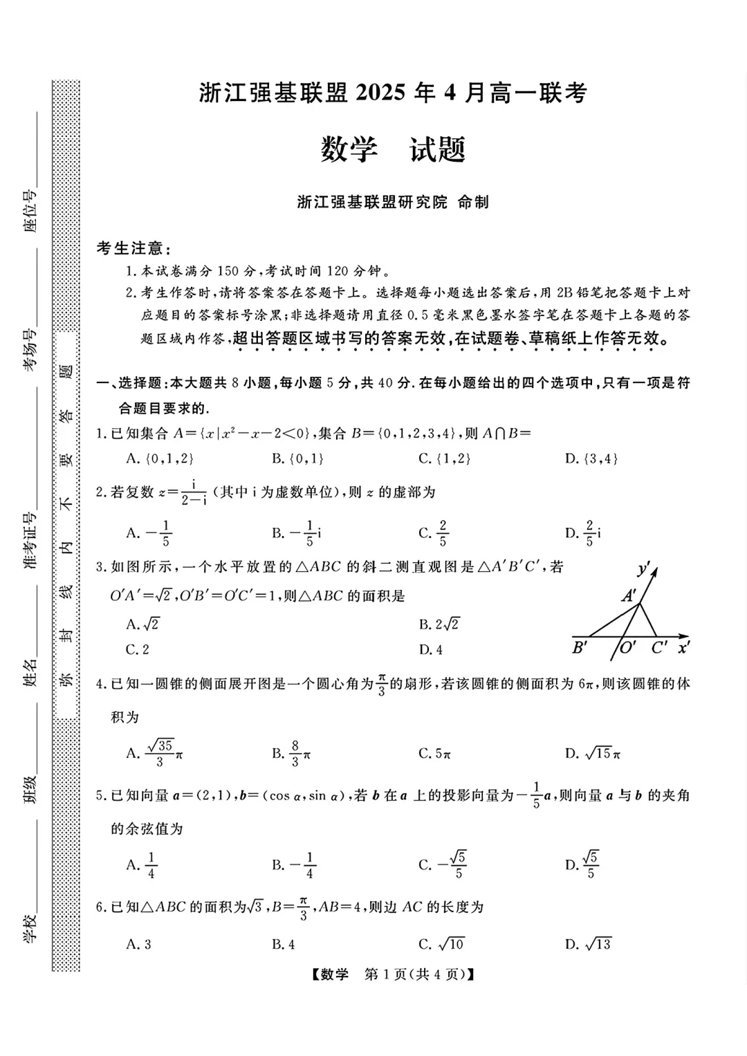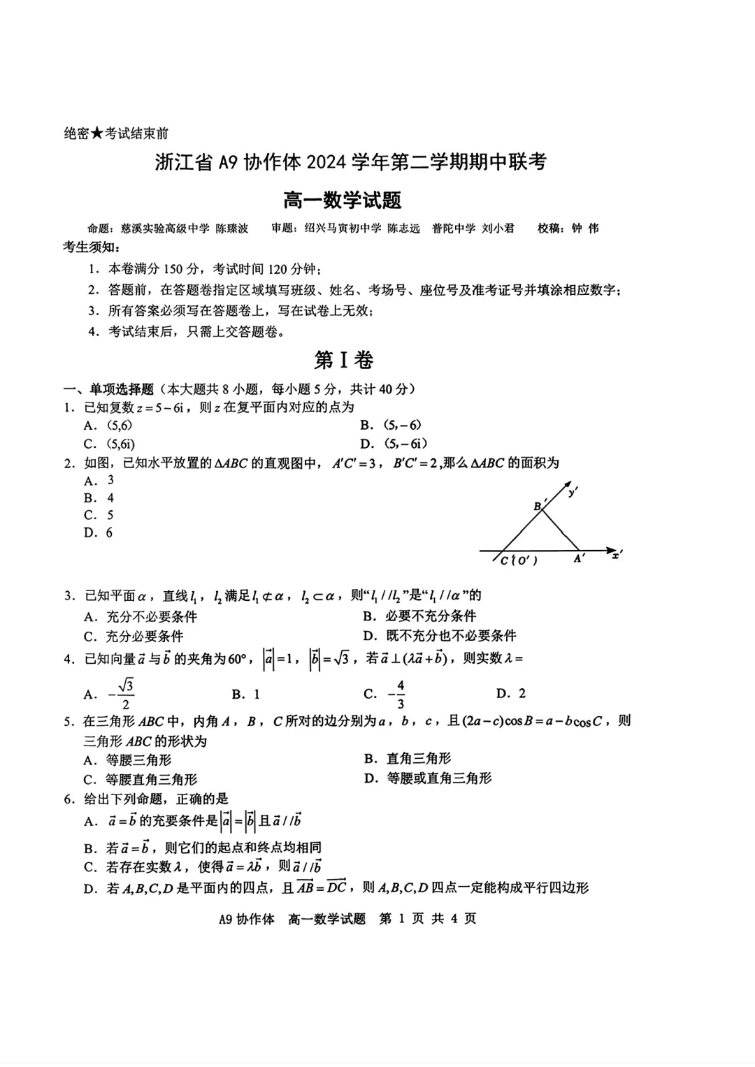 2504-高一下期中考