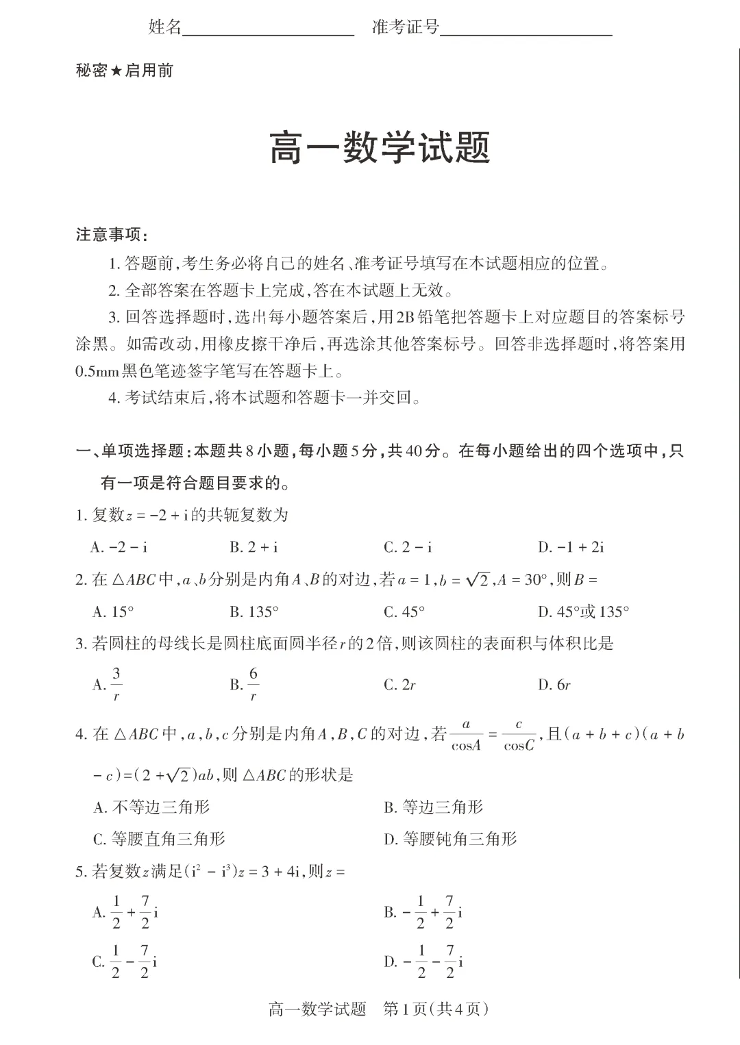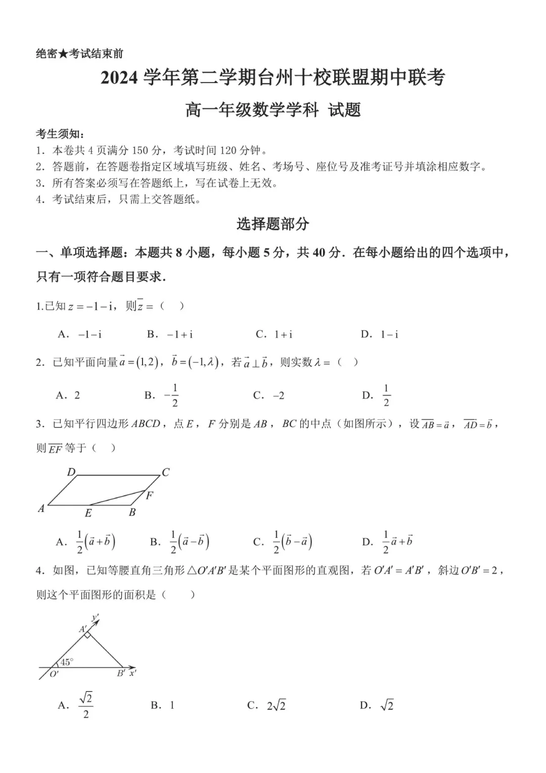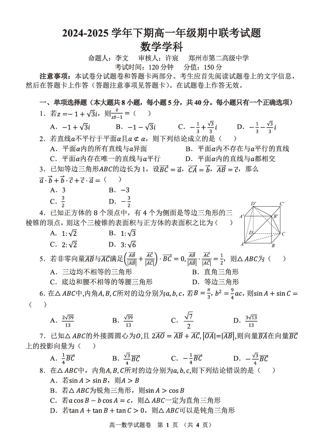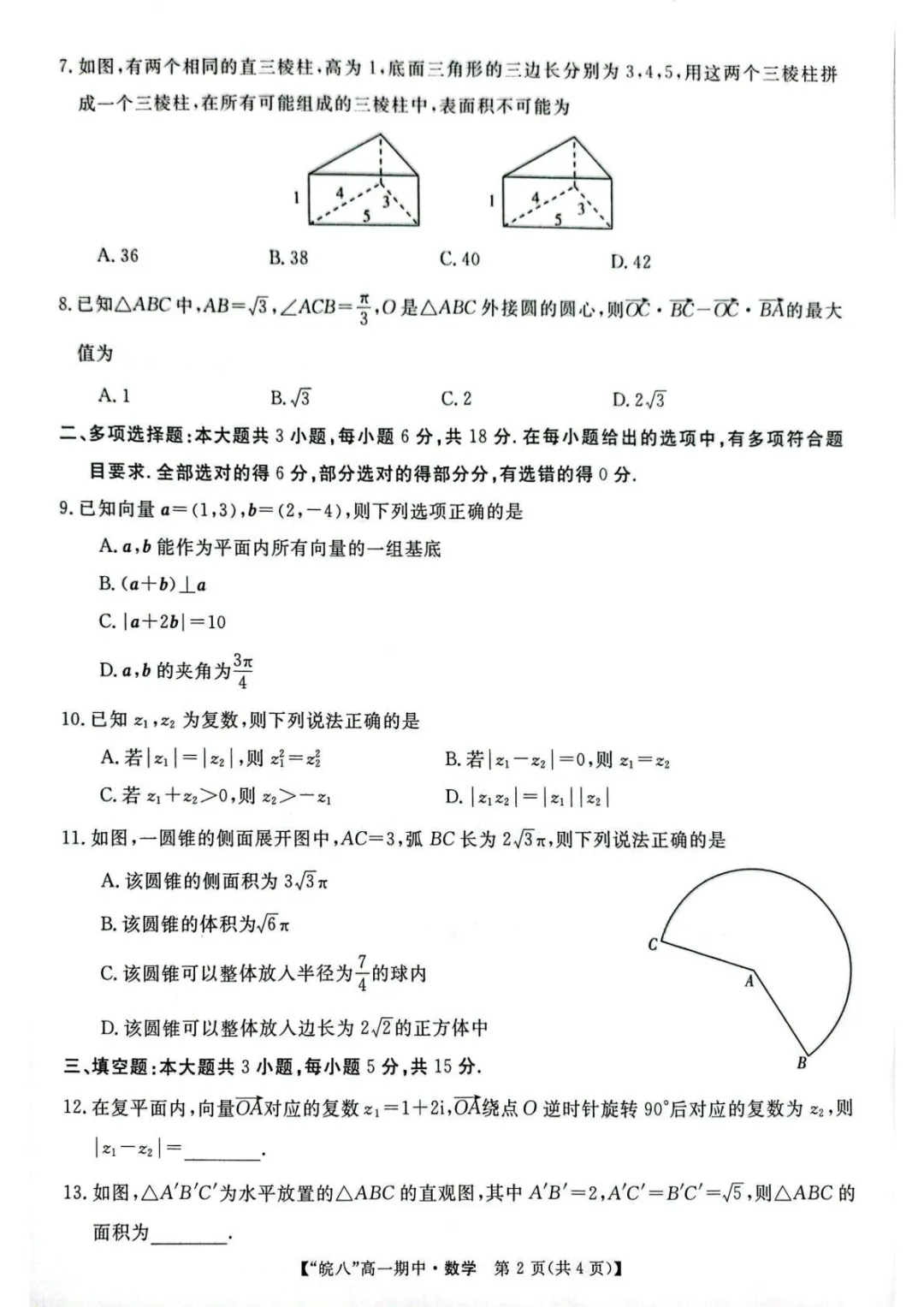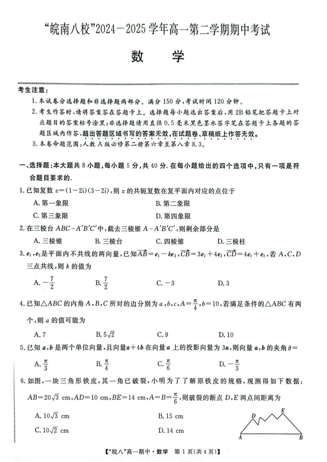 2504-高一下期中考