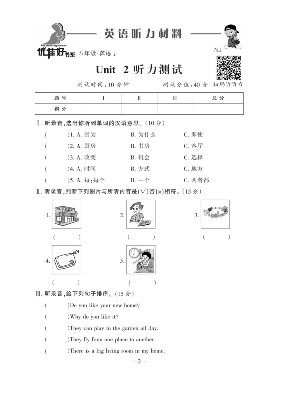五年级(下)英语试卷优佳好卷牛津沪教版听力