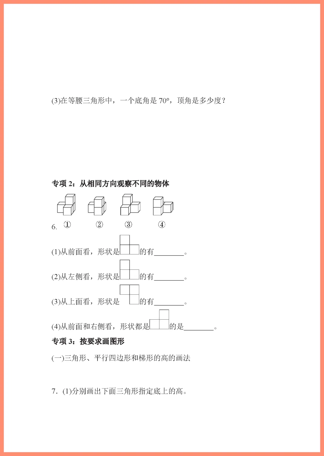 【免费下载】(7)--题型突破卷5 图形题【青岛63】四下数学专项练 | PDF完整高清电子版可打印