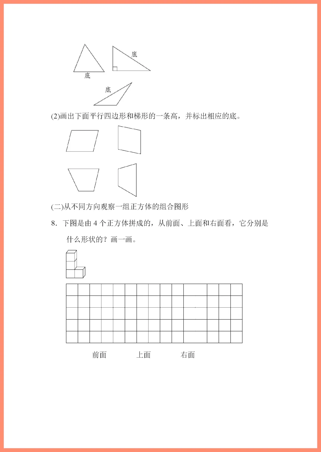 青岛版六年级三学制四年级下册数学家长请注意!这份 2024 年专用的《题型突破卷 5:图形题》共 5 页,专为孩子量身打造。资料聚焦四下几何难点,涵盖图形观察、面积计算及空间想象等核心考点,通过典型例题剖析与专项强化,帮助孩子理清解题思路,轻松攻克图形难关,提升做题准确率与速度。想要孩子数学成绩稳步提升?赶紧下载打印,让孩子趁热打铁练起来吧!