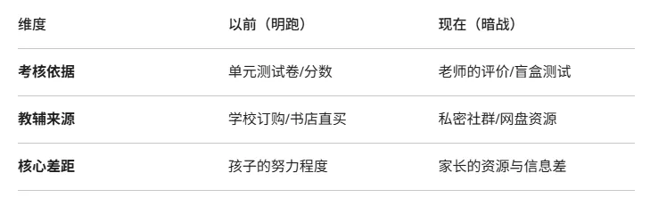 以前,单元测、期中考、分数段,那是家长手里的“体检报告”。哪里不会补哪里,清清楚楚。 现在,学校不准排名,不准发卷子,甚至连练习册都不让带。