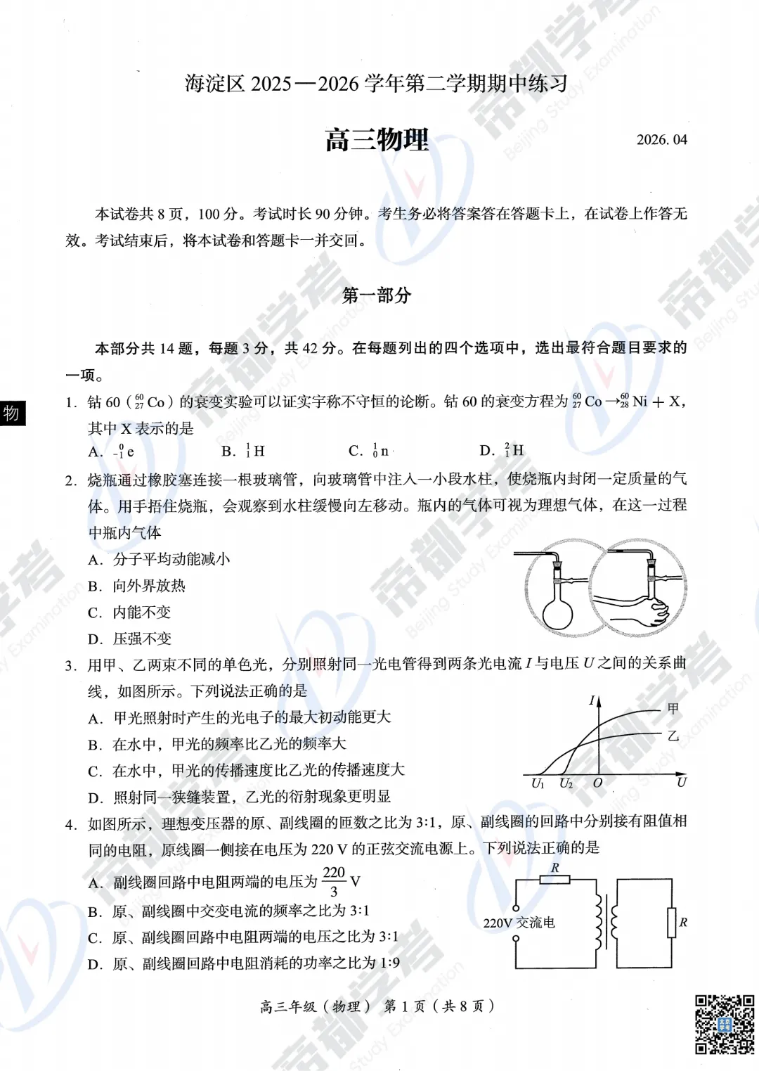 2026海淀高三一模物理、语文、数学试卷&答案出炉!太星初升高整理了相关内容,分享给大家~