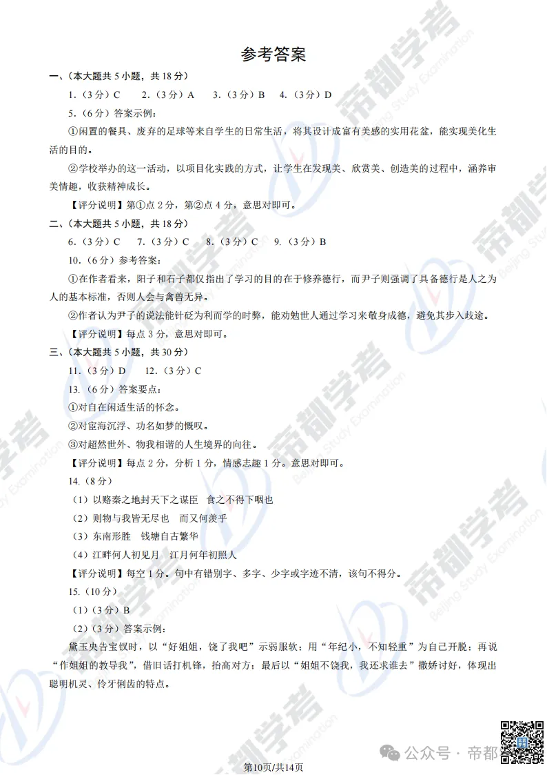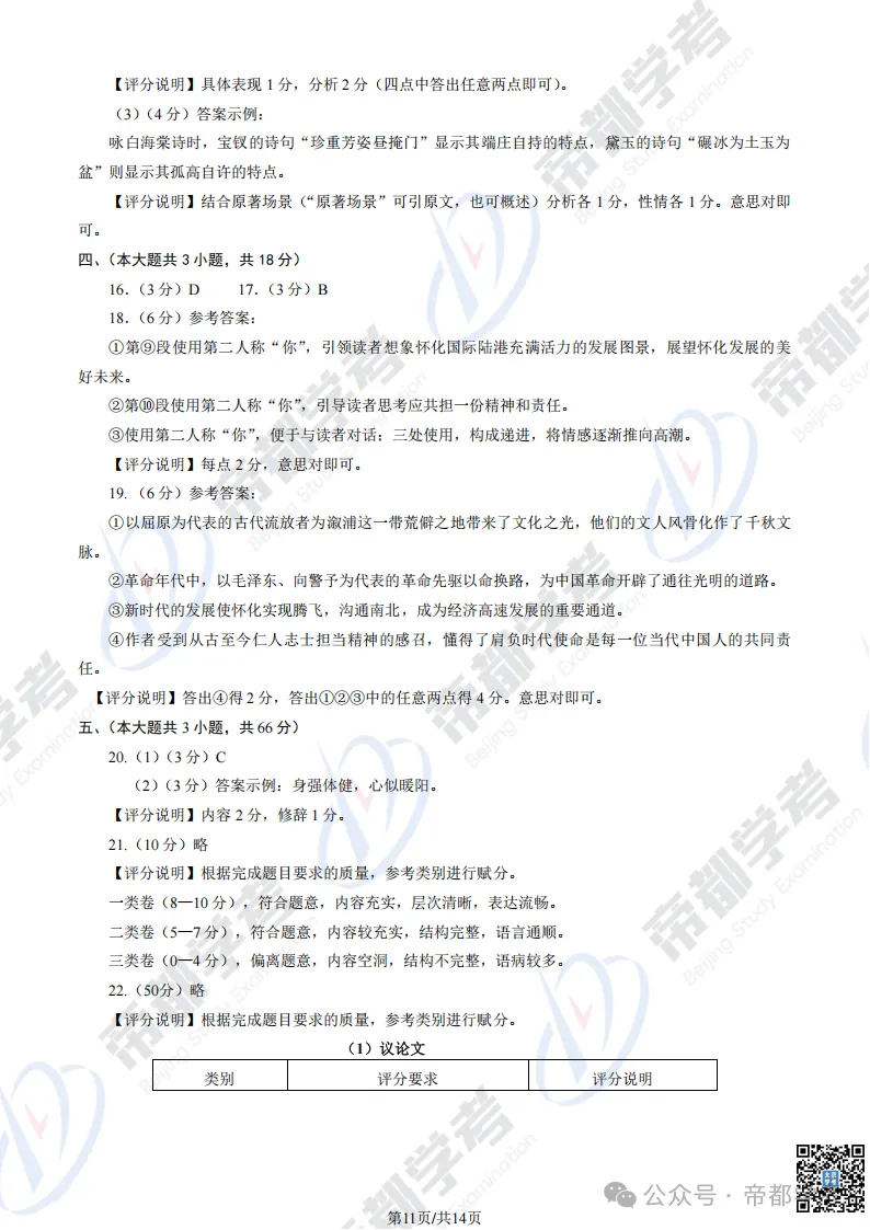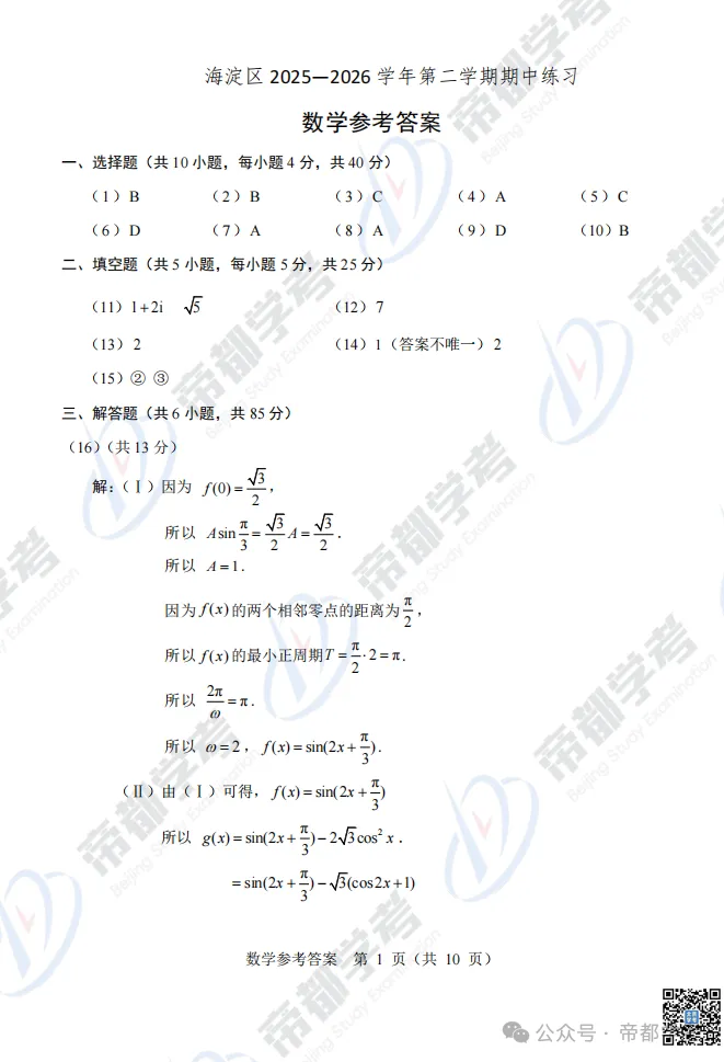 更多高三一模试卷答案,关注公众号帝都学考