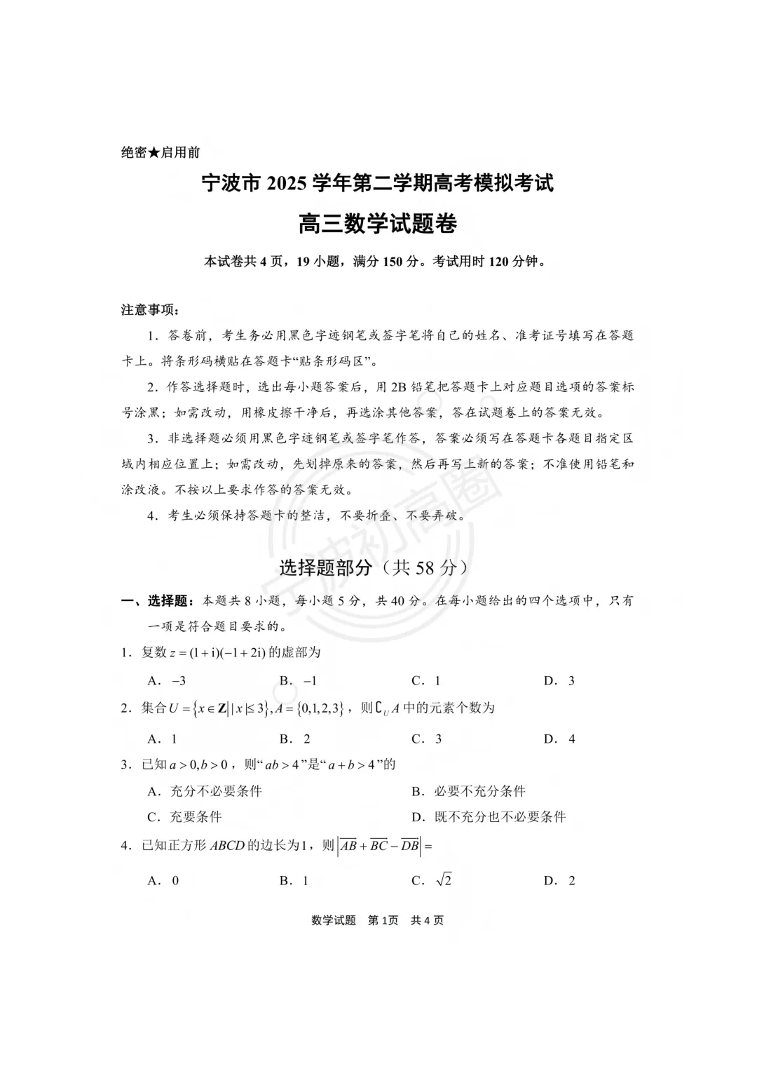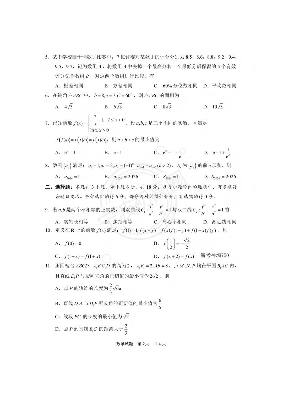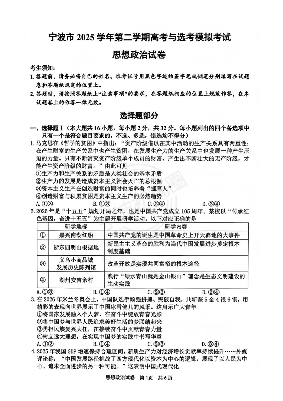 >【宁波二模】26年4月宁波市高三二模试卷分享!