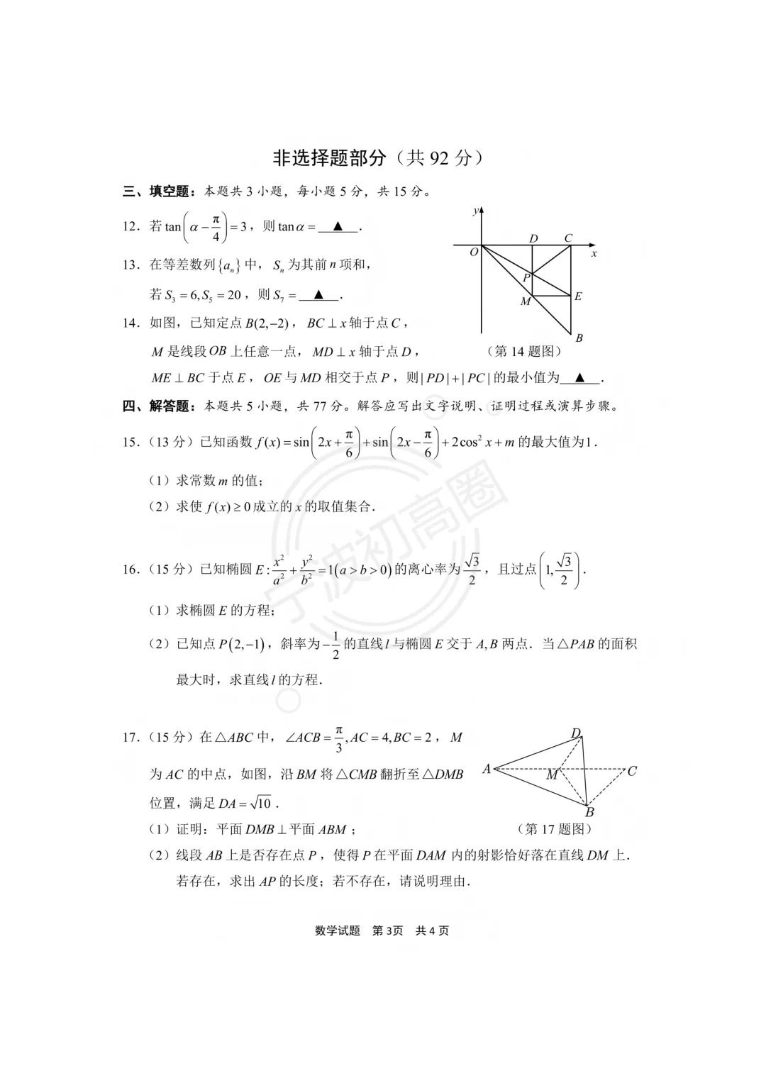 天津市高三一模数学试卷及答案