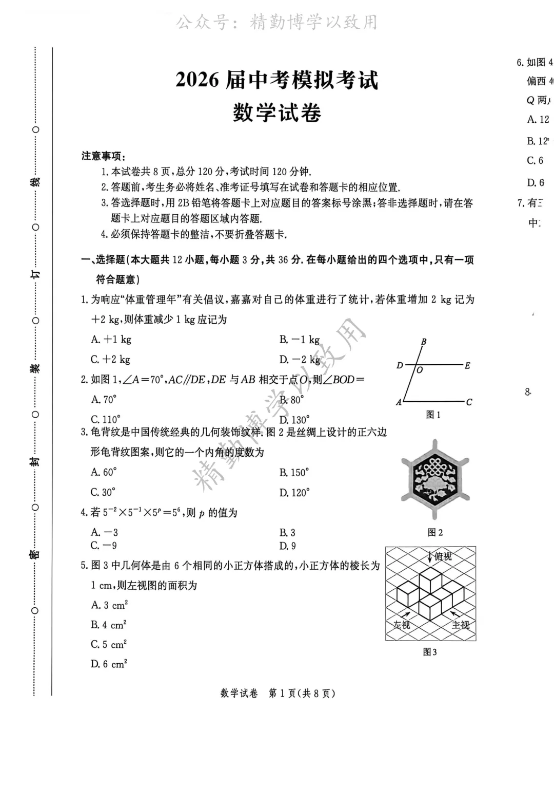 >2026.4月唐山市九年级中考一模试卷(数理化语,含答案)