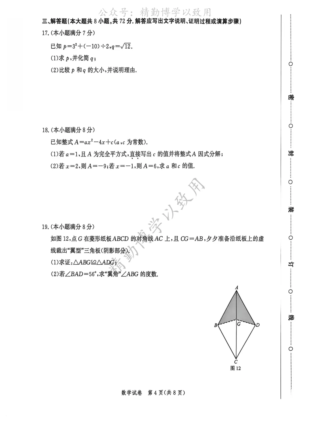 七下数学|期中考试卷(含答案解析)最新4套,完整电子版可打印!(2026人教版)