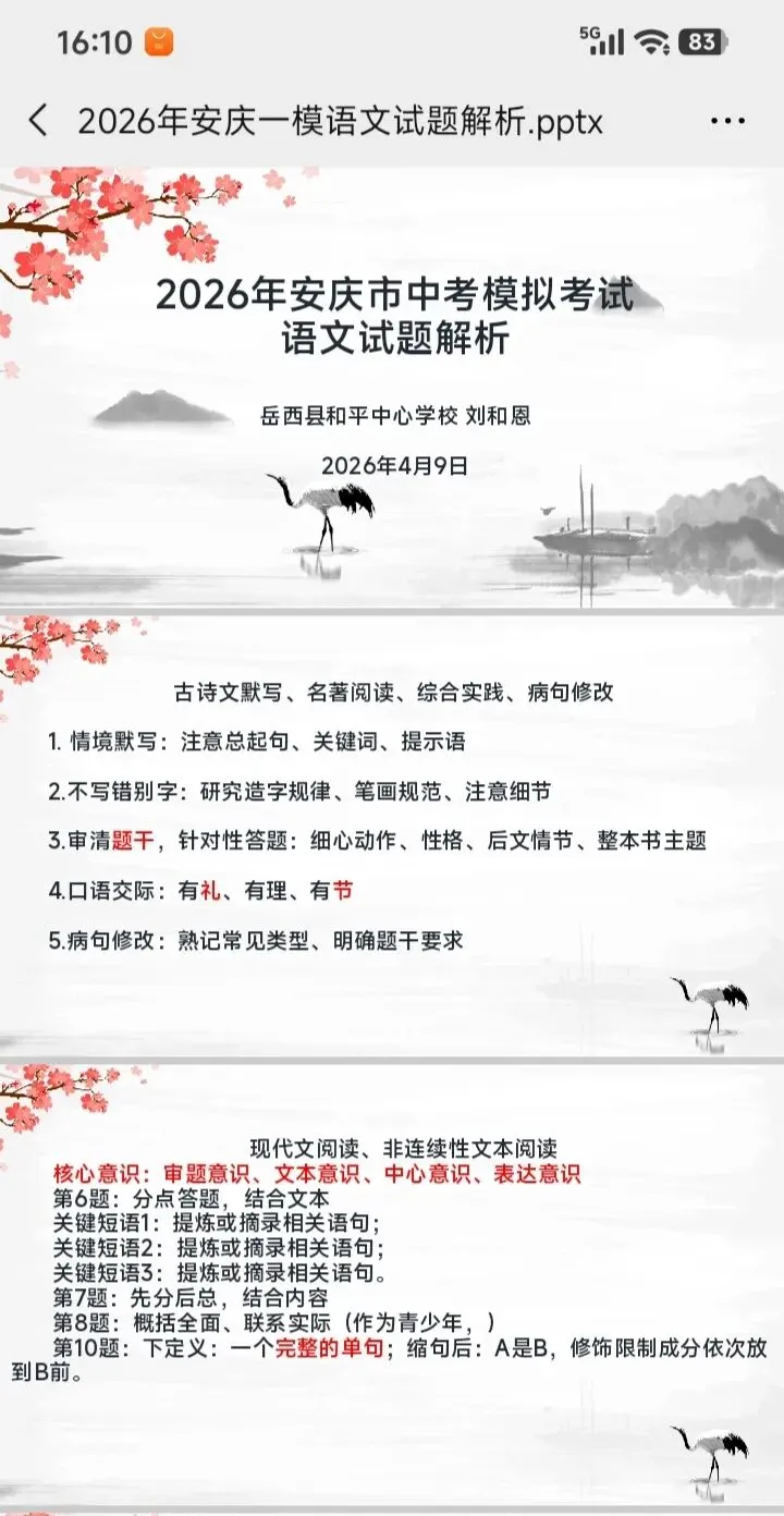 公开课:2026年安庆一模语文试卷讲评