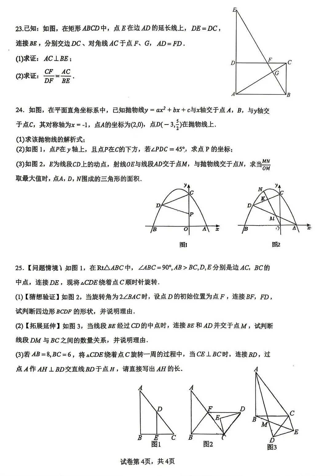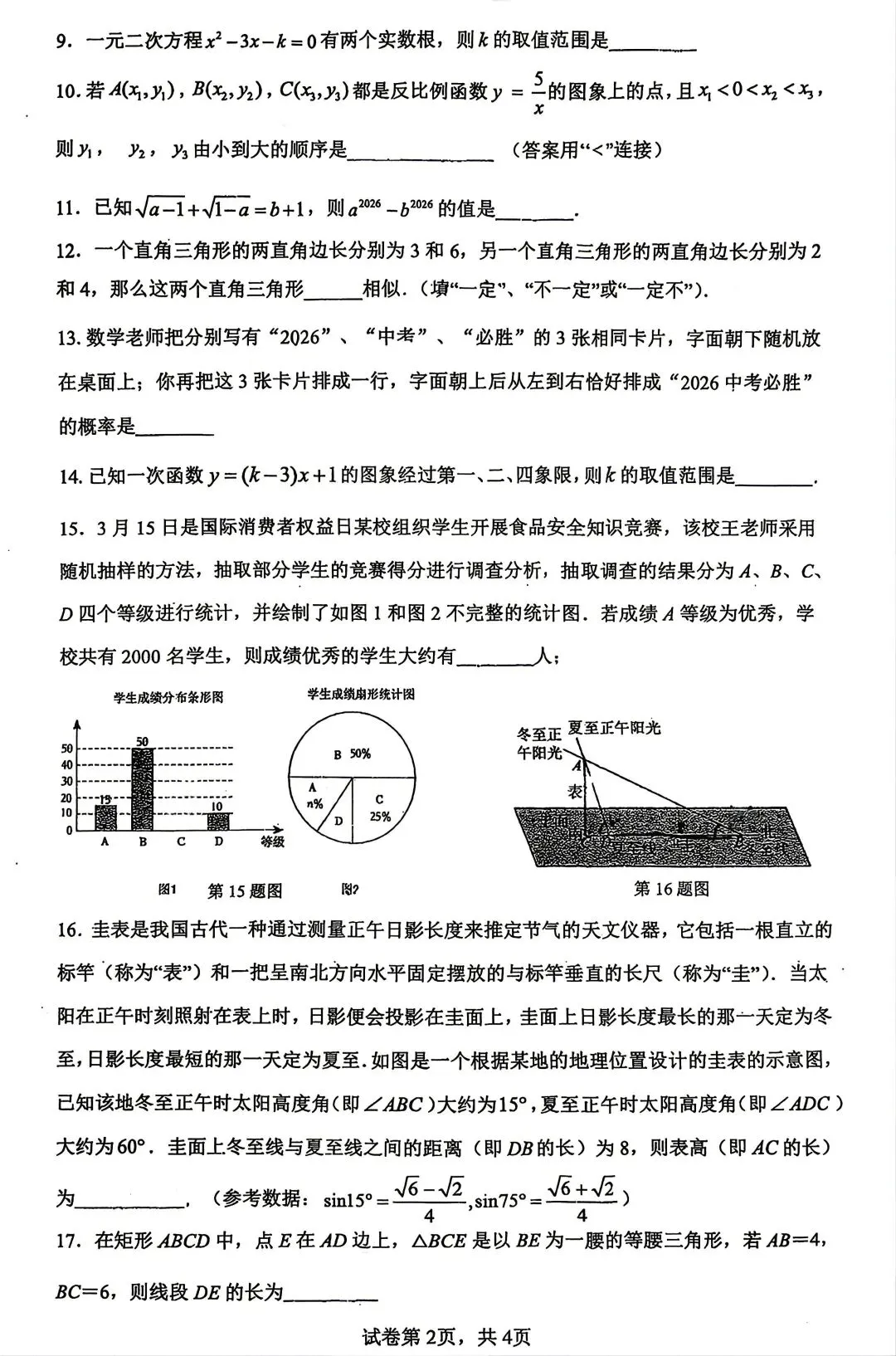 进才中学北校初三数学月考试卷及答案(2026.4)