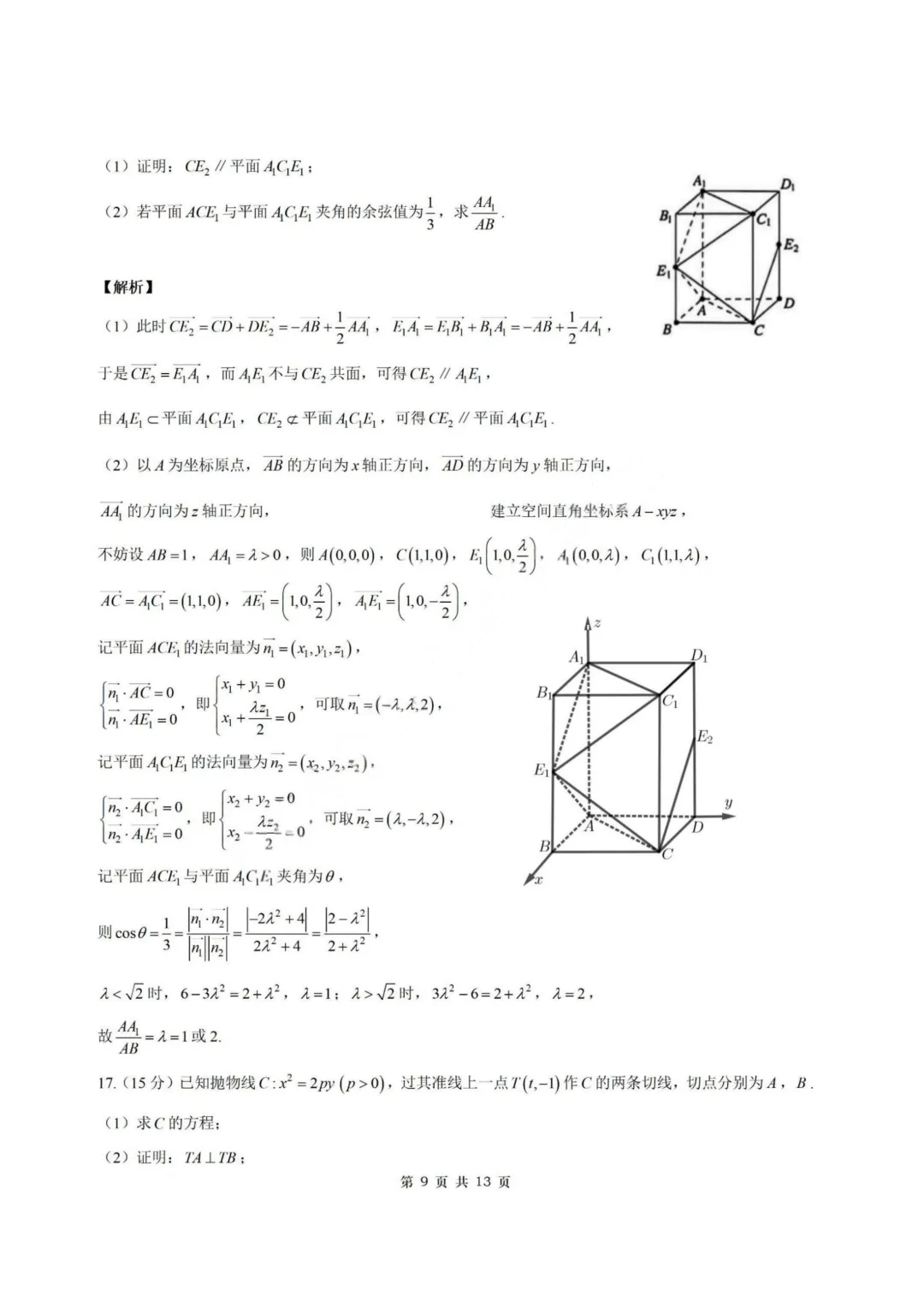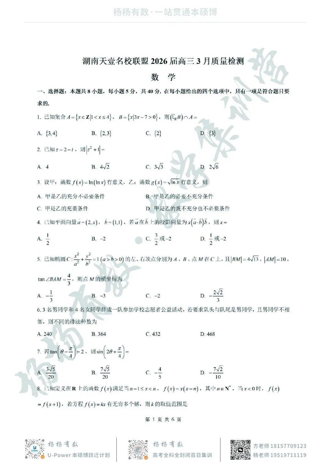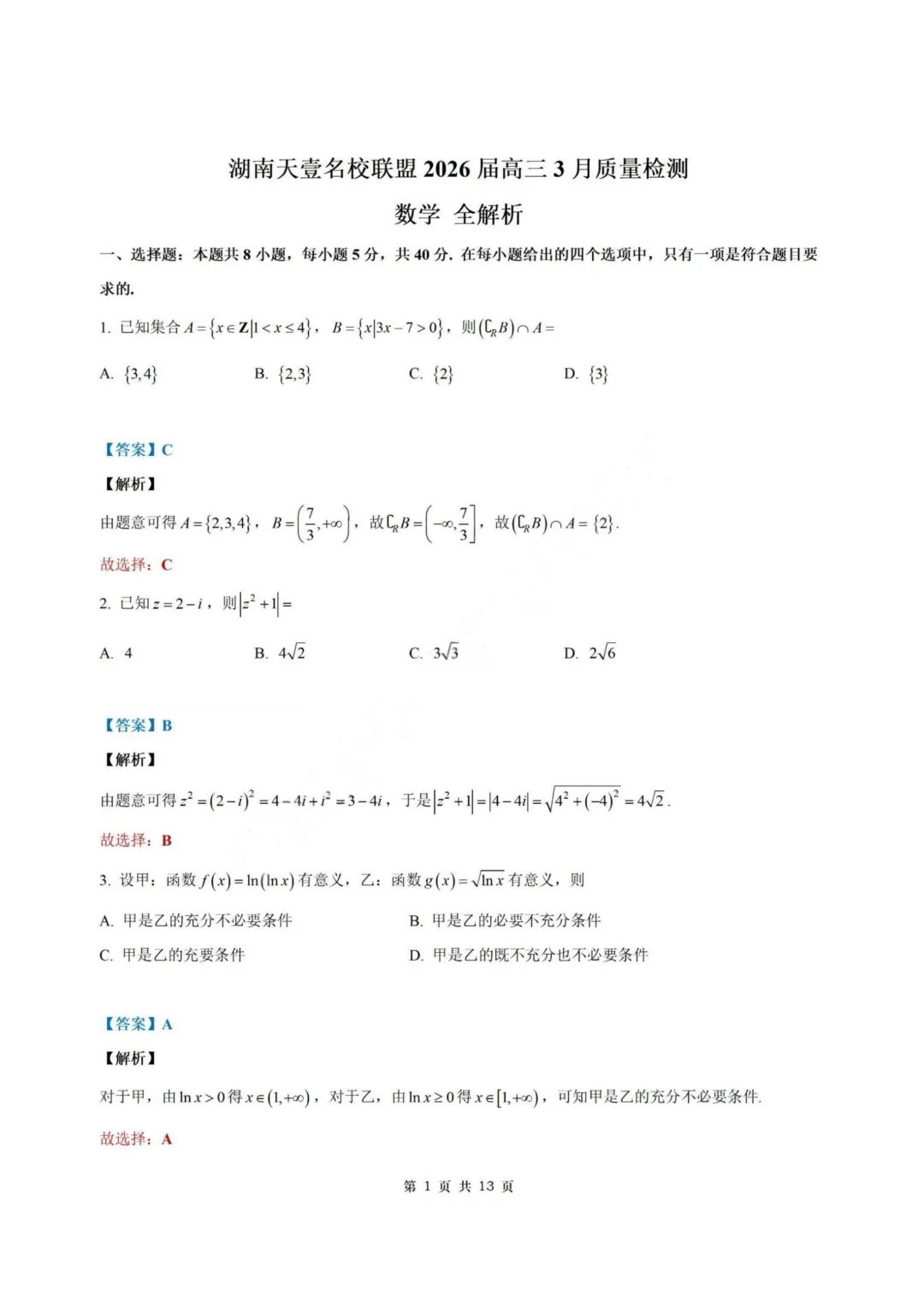 2026年3月湖南省天壹名校联盟质量检测—高三数学
