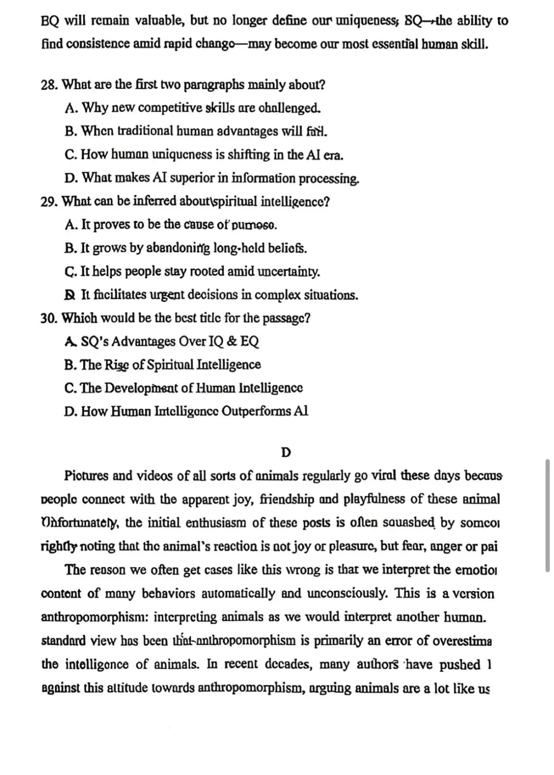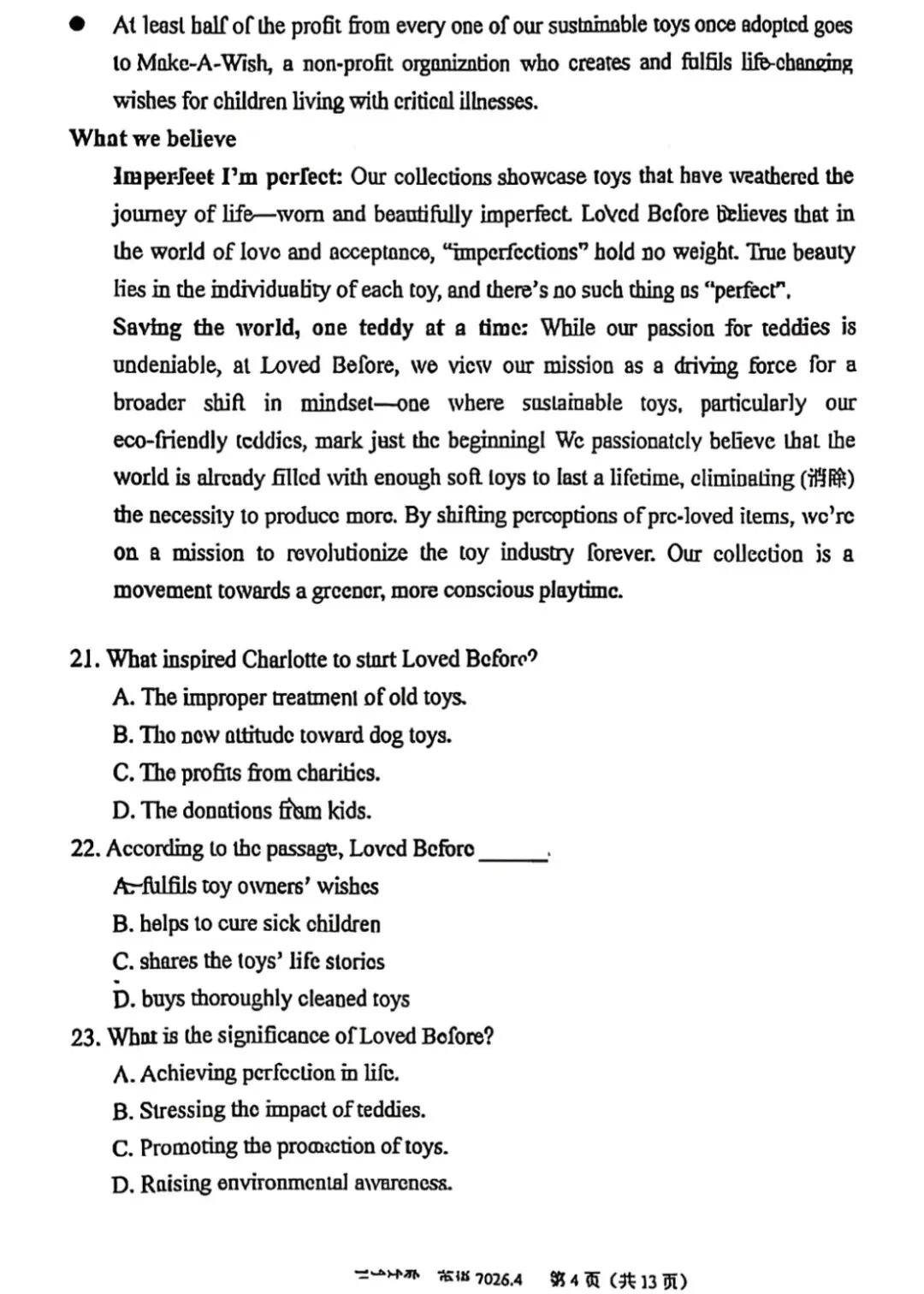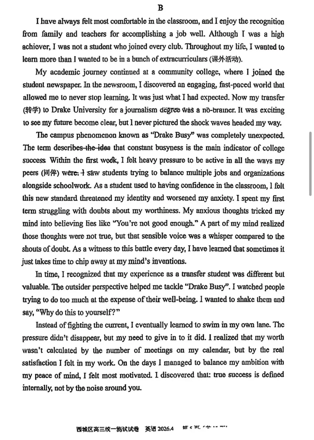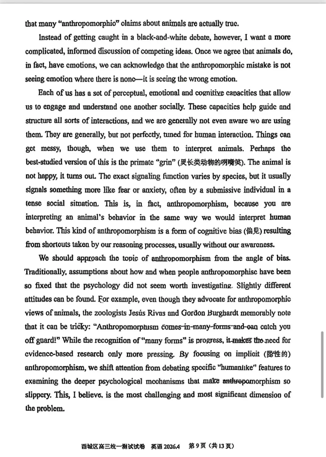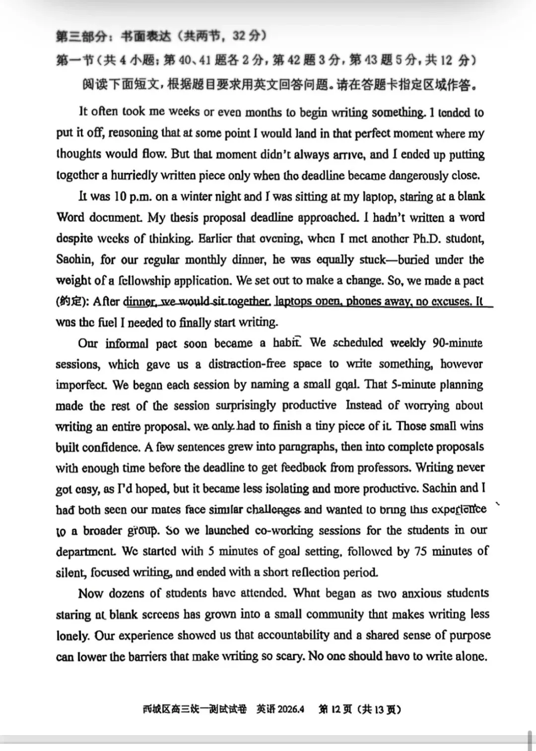 >2026北京西城高三一模英语真题试卷与答案