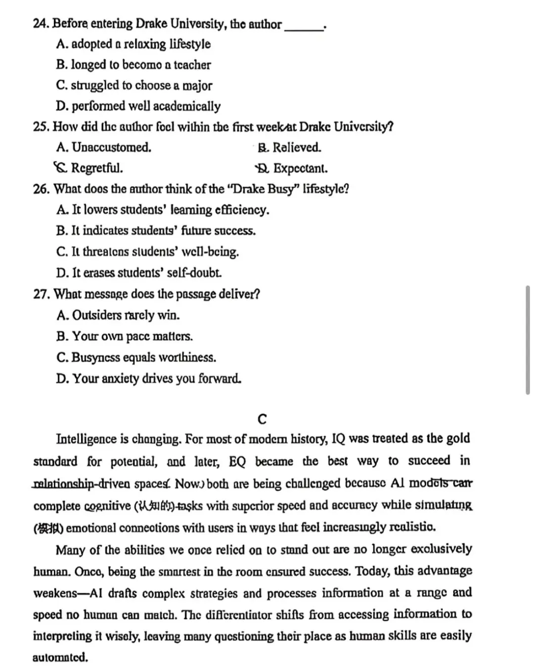 温州市2026届高三二模英语试卷 手写解析