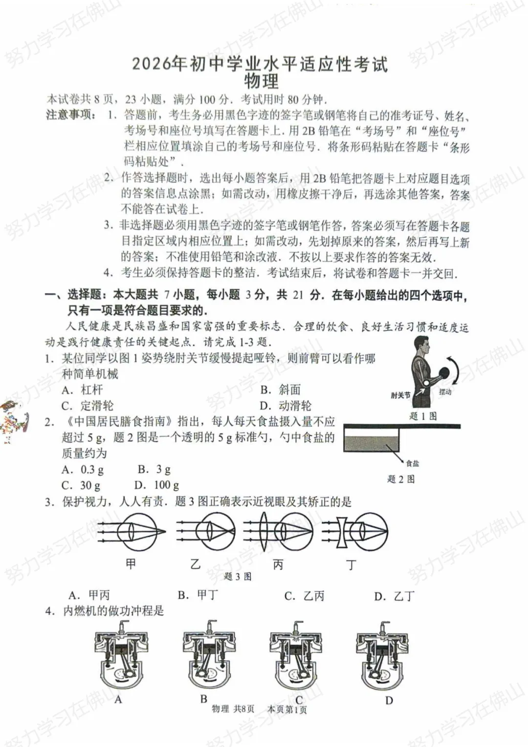 难度整体偏低,基本不涉及计算,侧重基础概念,同时结合生活情景。基础扎实、记忆牢固的学生做题速度会很快。考查内容覆盖面广,涉及物理“声、光、热、力、电”五大板块。