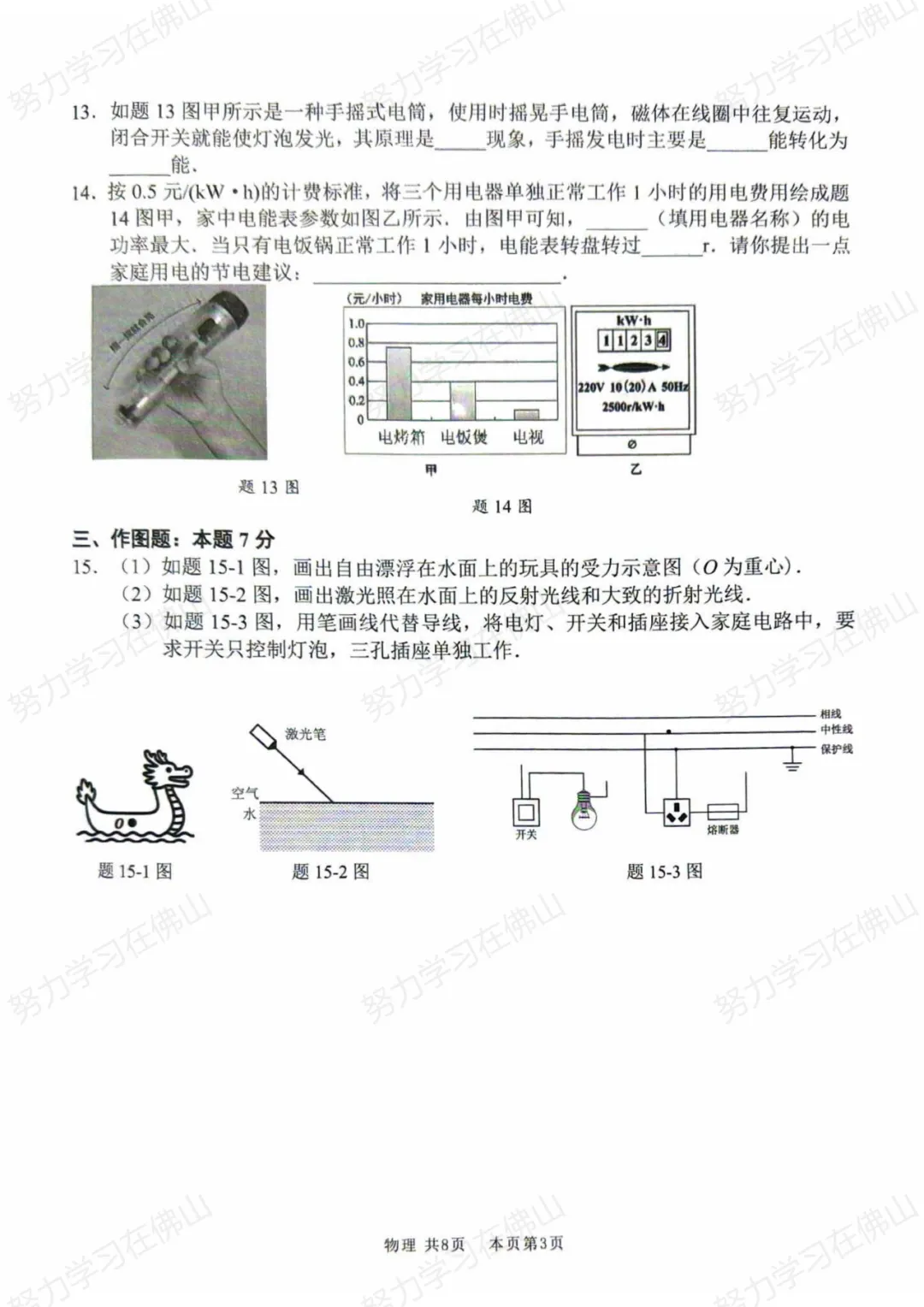 题型比较常规,包括力学作图、光学作图和家庭电路作图。平时只要理解原理、作图要点规范到位,这类题目基本可以拿满分。