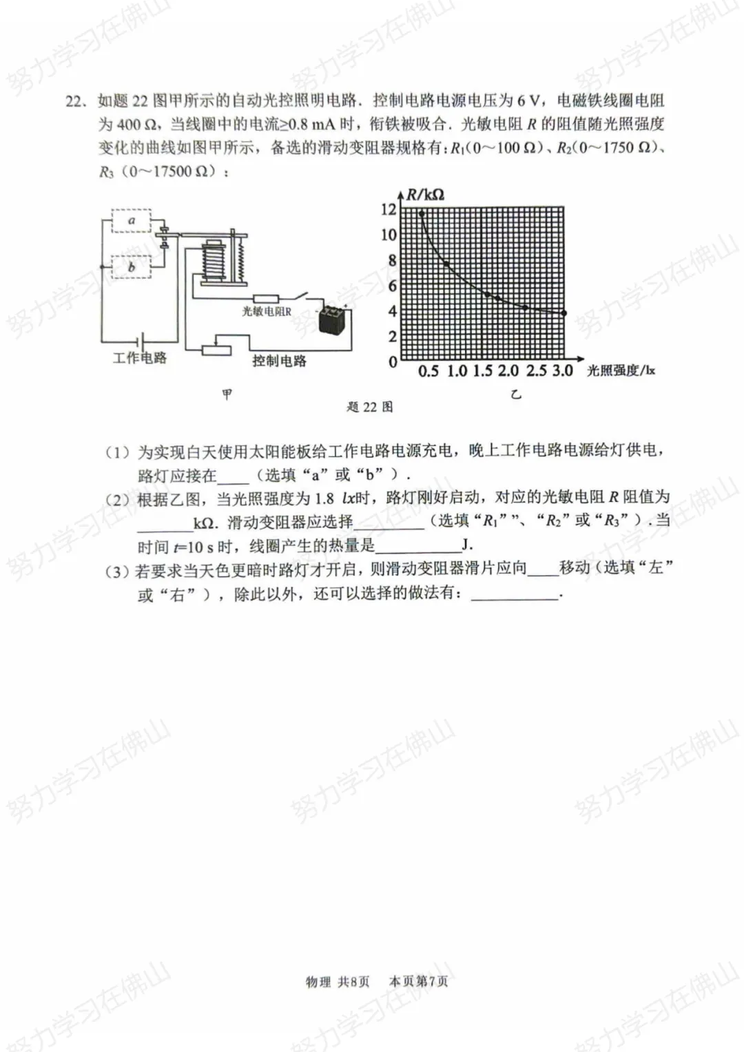 ②第二题:电磁综合题,考查“自动光控照明电路”。本题侧重信息处理与数理结合能力,题型比较常规。但如果学生平时掌握不扎实,拿高分会有难度。部分学生可能因逻辑推理或计算问题扣分,也有不少学生因知识遗忘而失分。