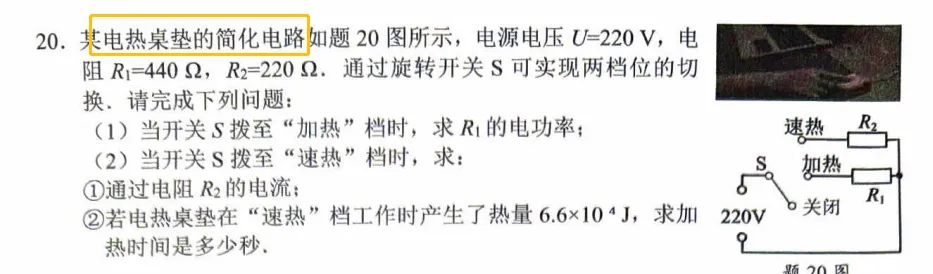 ②第二题:结合“科技+家电”情境,考查电功率挡位问题与焦耳定律。
