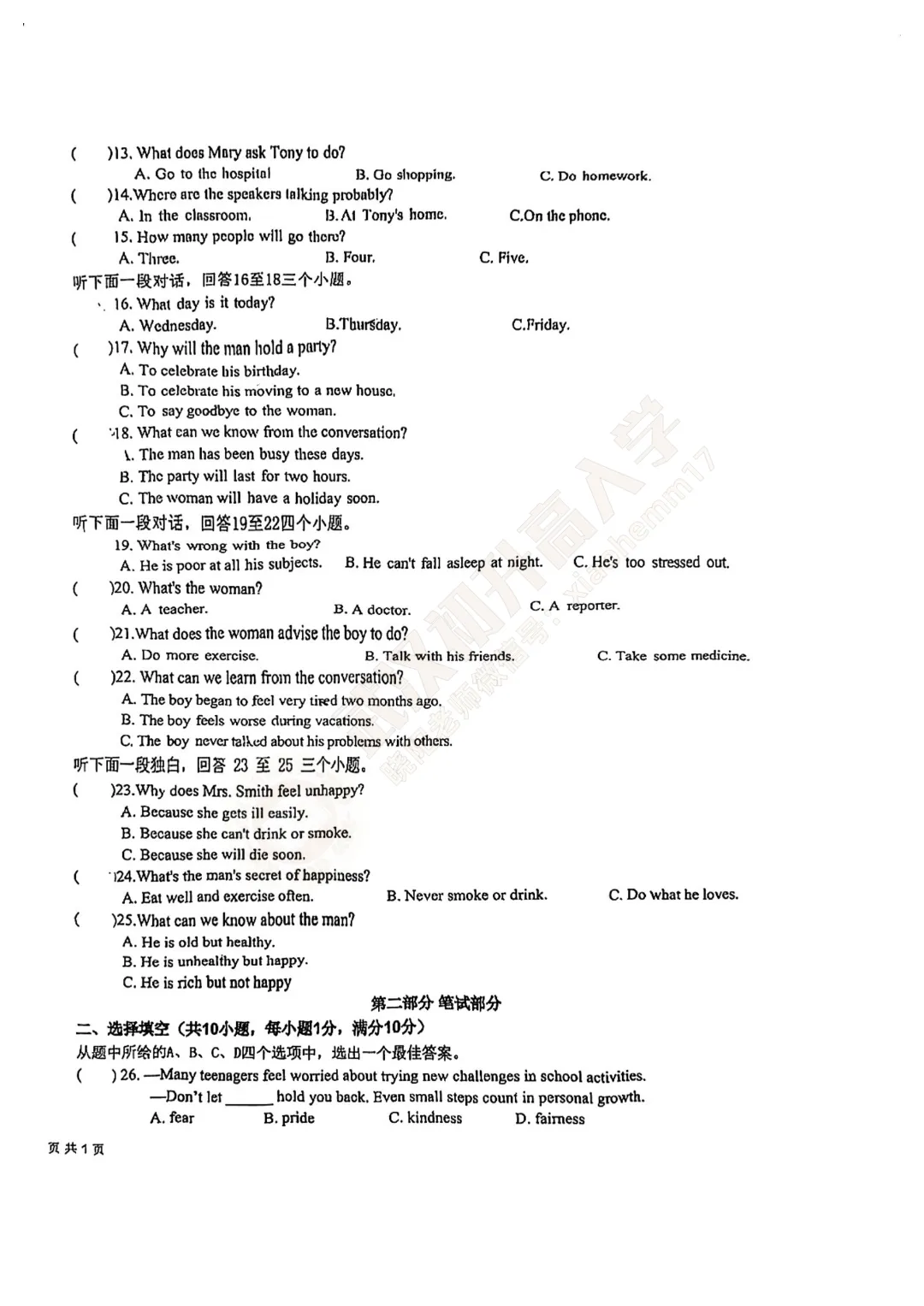 即可免费领取试卷及答案