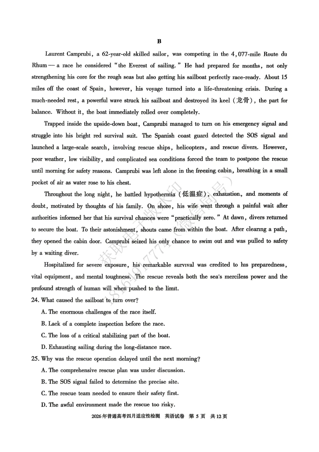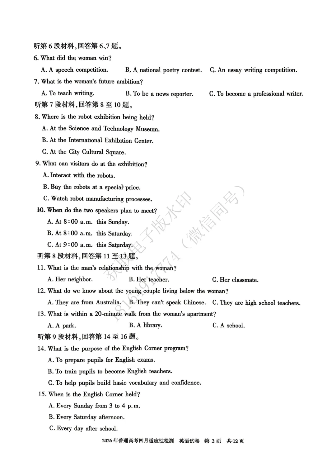 2026年自治区三模英语试卷及答案