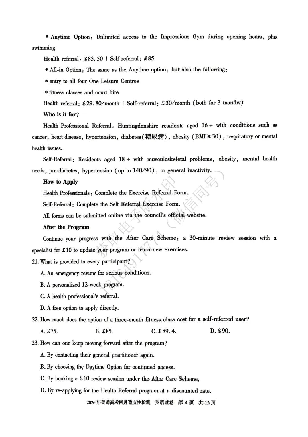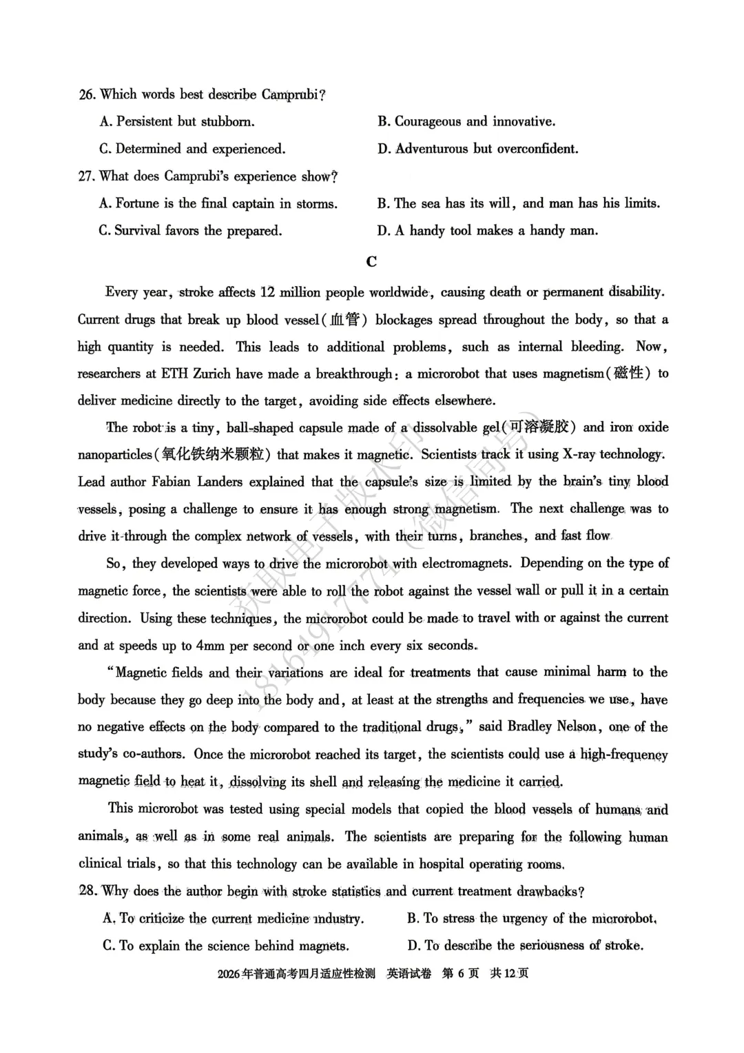 >2026年自治区三模英语试卷及答案