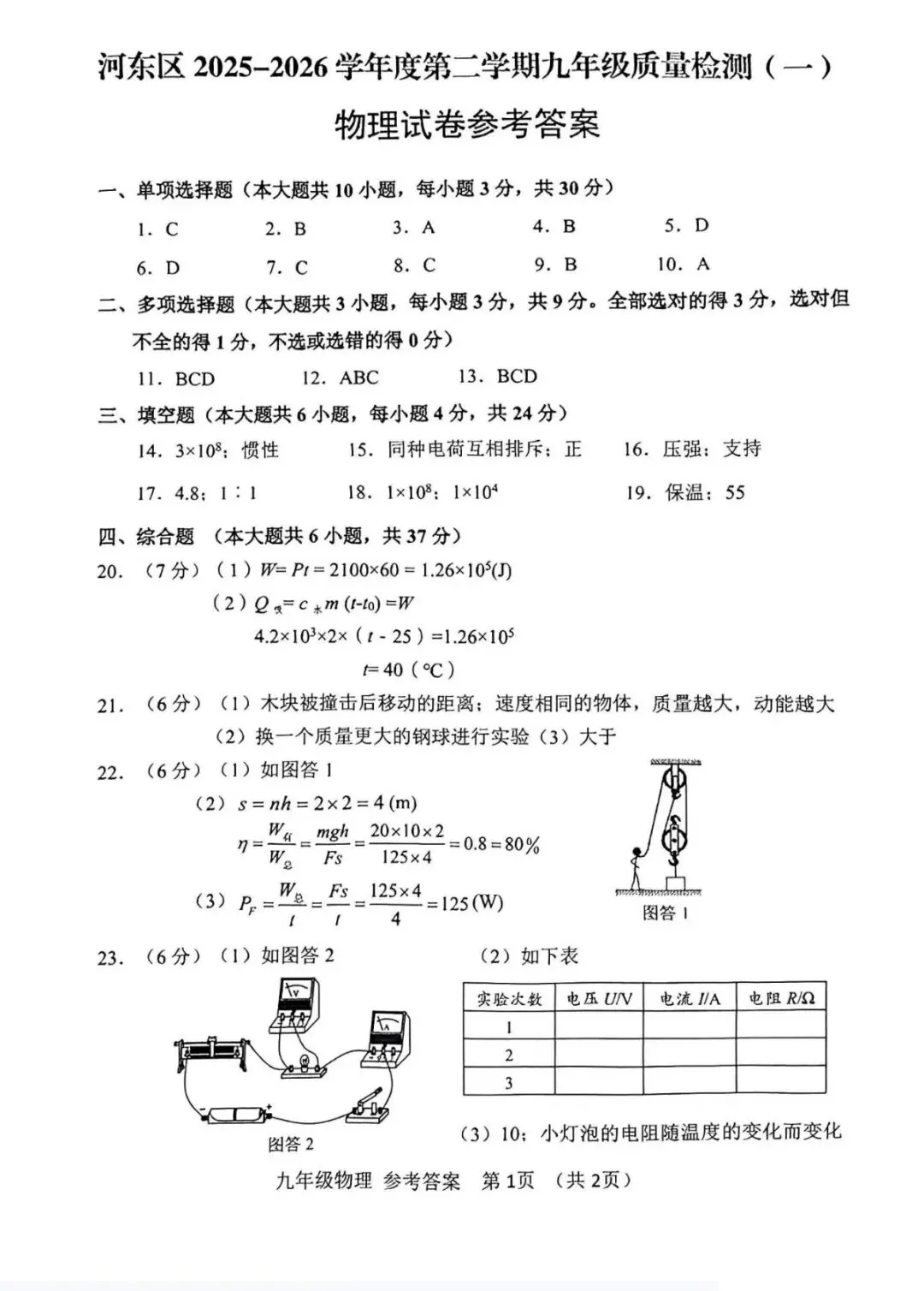 22题:滑轮组作图绕线、有用功总功计算、机械效率、功率求解,囊括简单机械所有计算公式,力学计算核心题型。