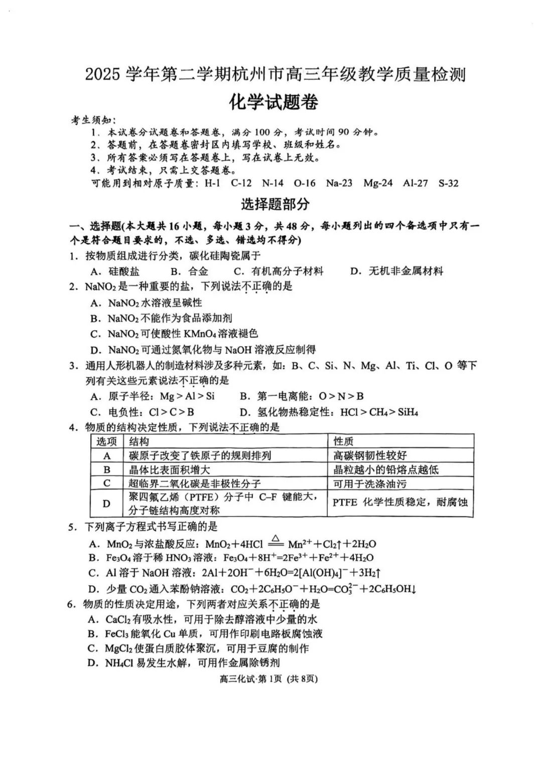 作者寄语:2026届杭州二模化学试卷+答案,7天有效领取,手慢无!!!