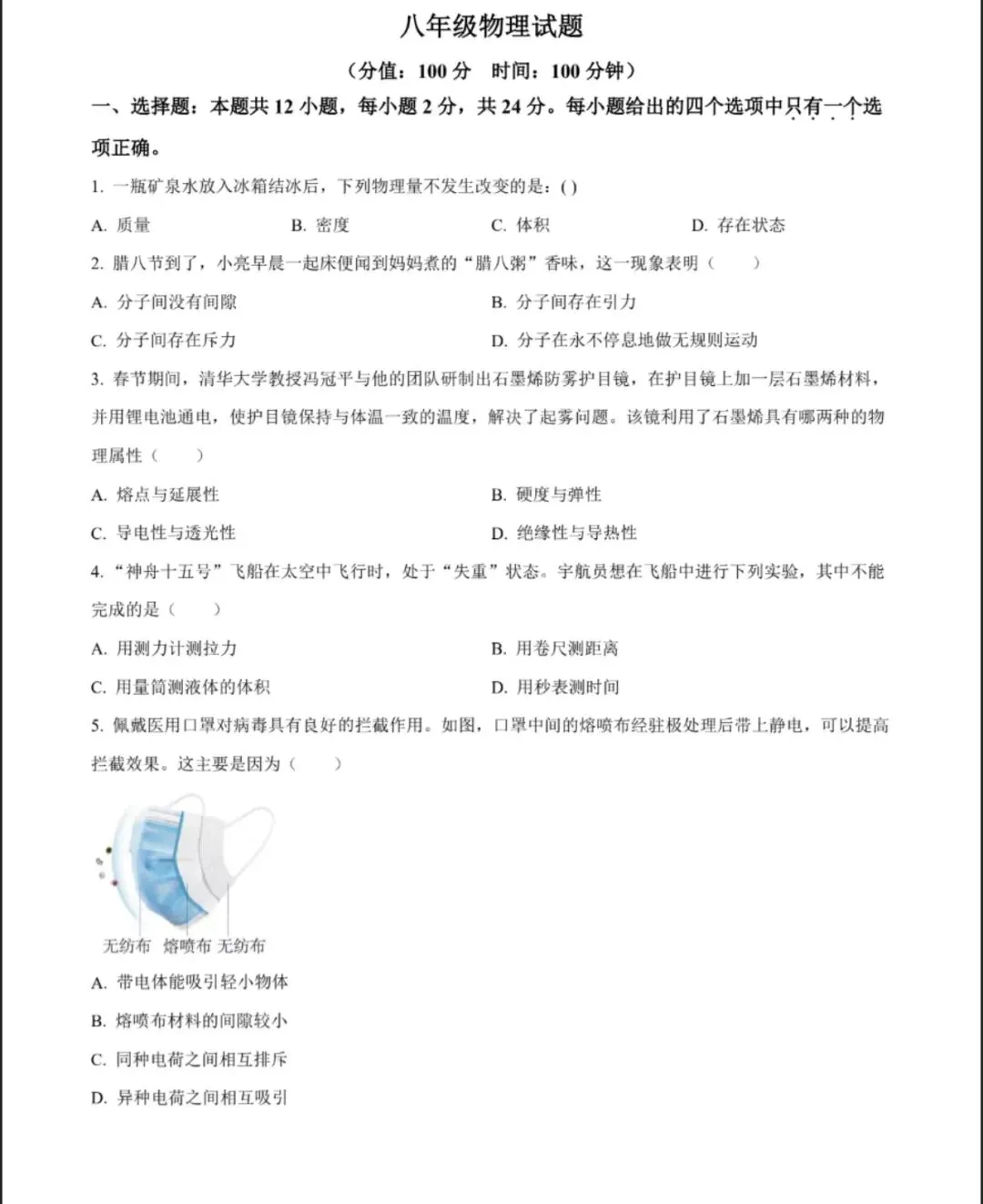 初二月考试卷