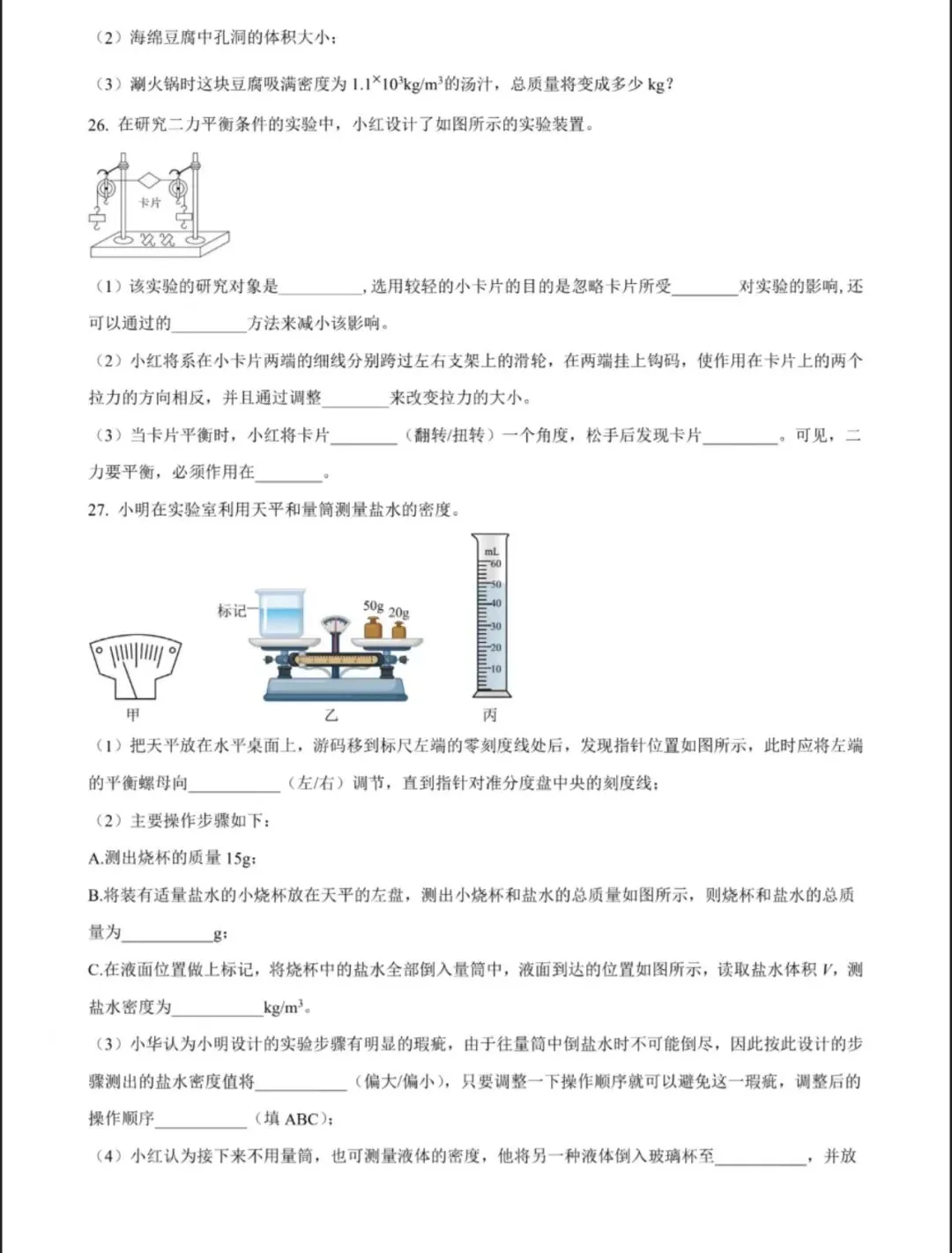 2026天津市河东区九年级物理一模试卷含答案