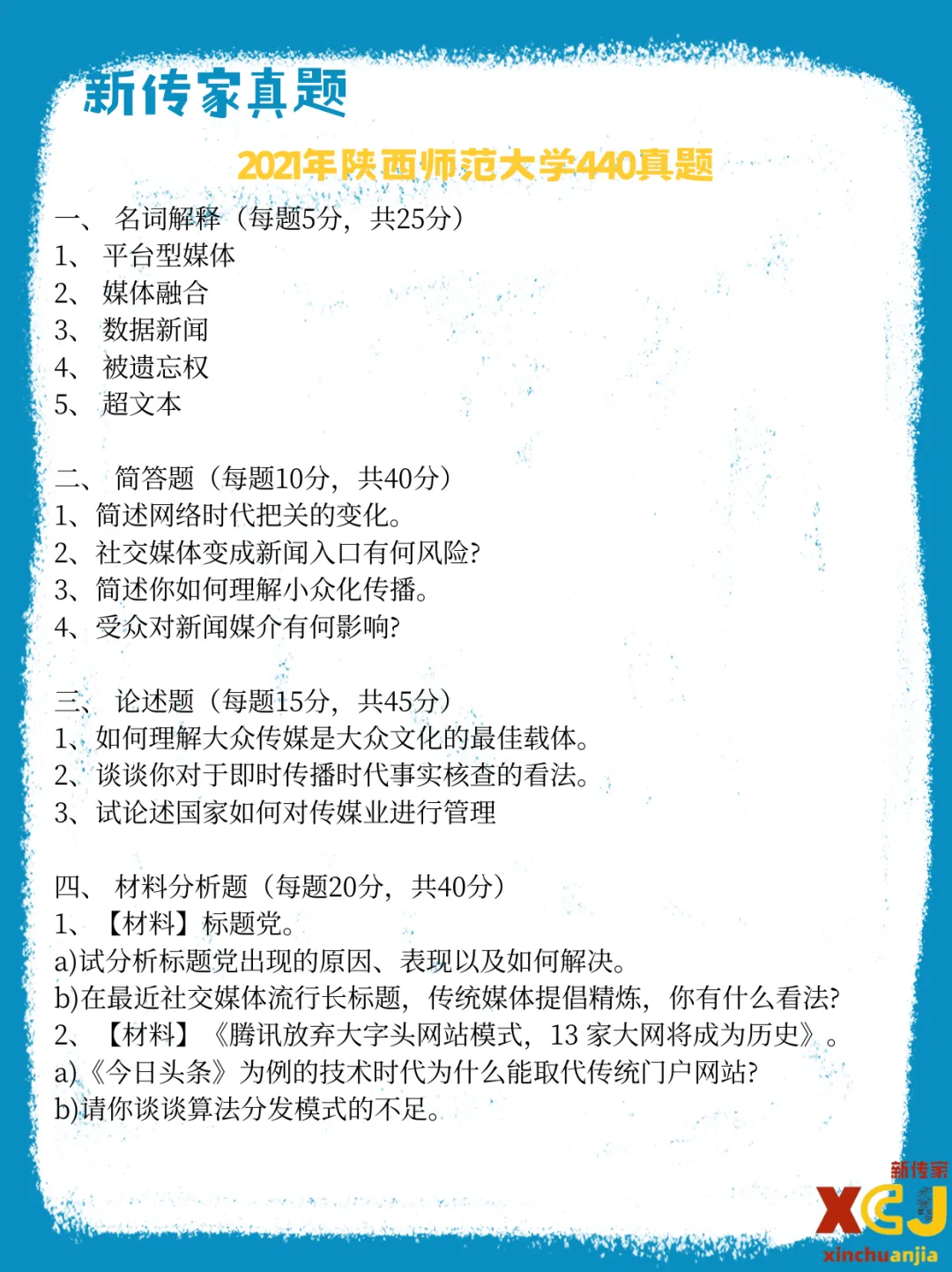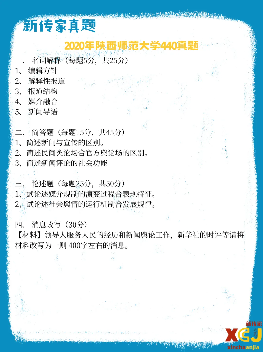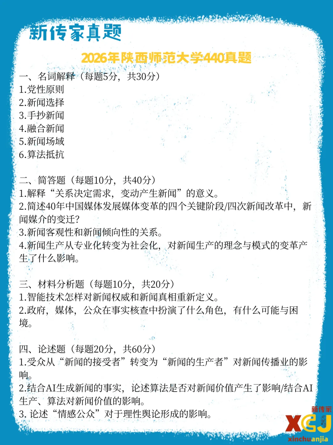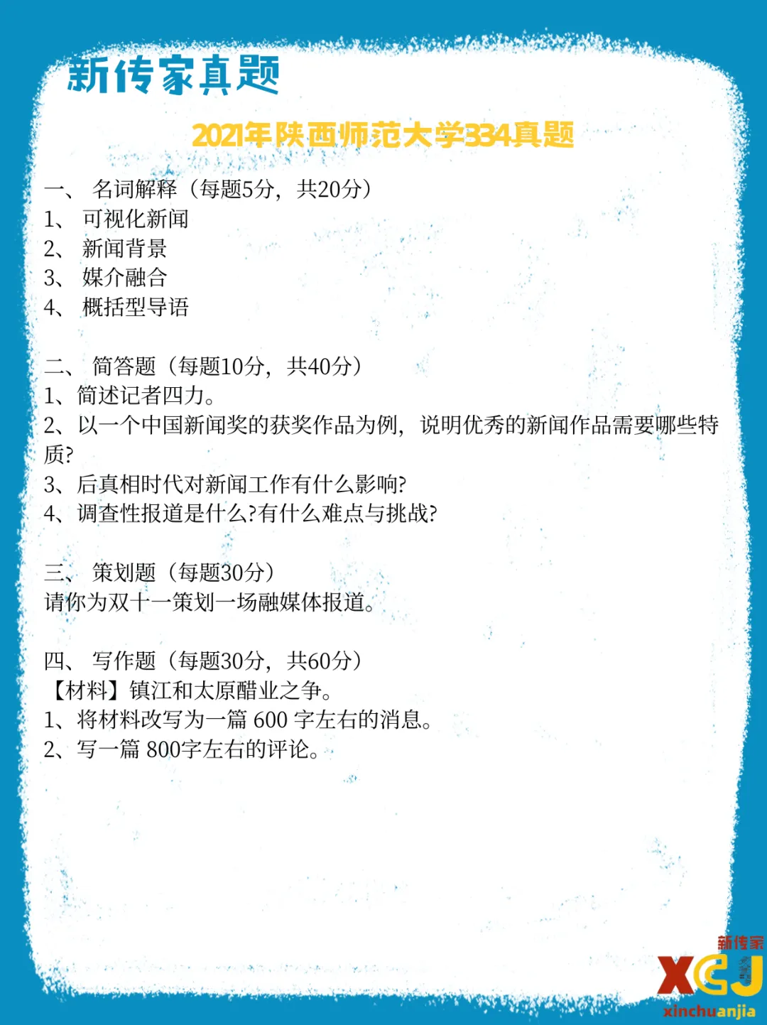 【新传考研】陕西师范大学新传考研真题|2020-2026|专硕334+440|7年14份试卷